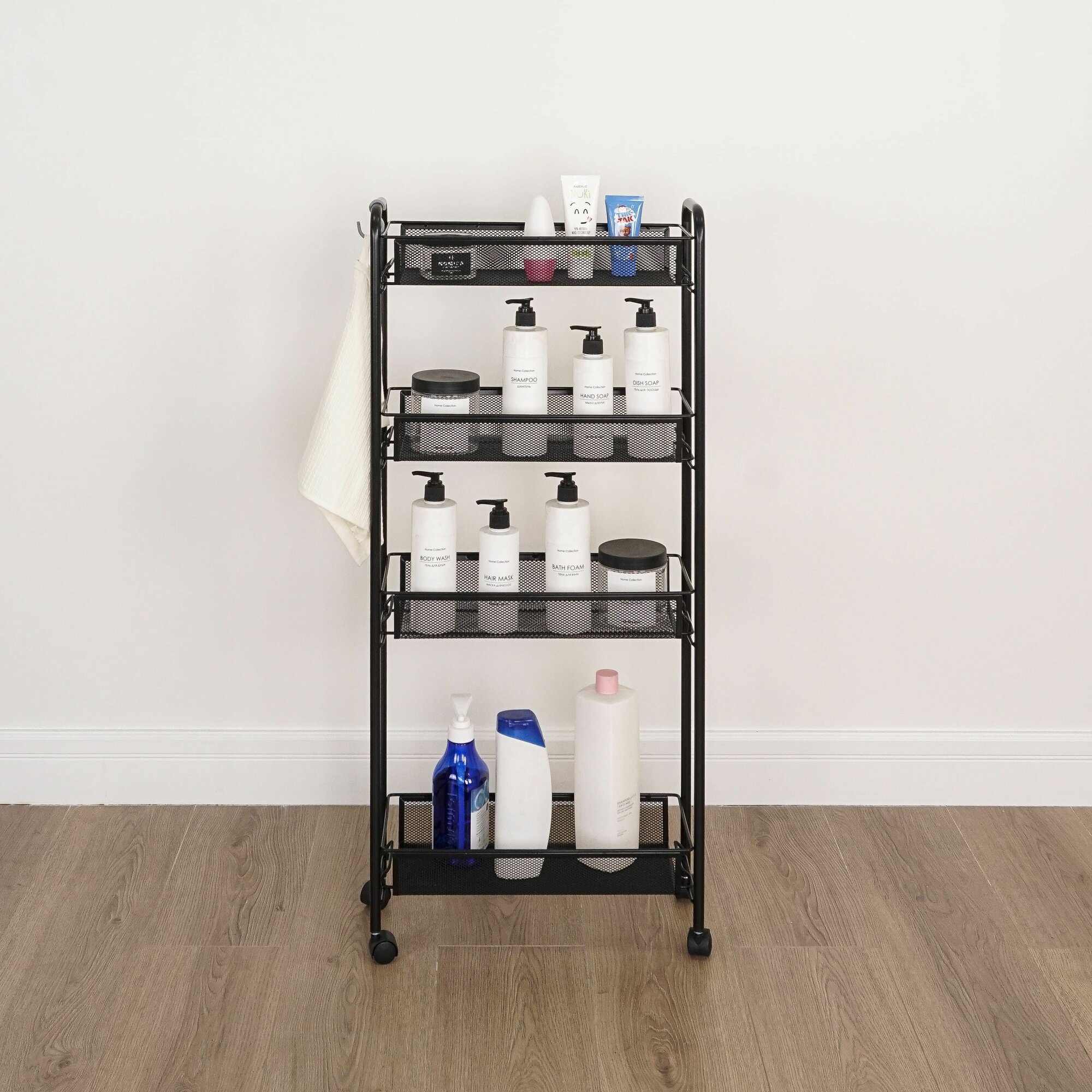 Этажерка ЗМИ Ладья 14К для кухни на колесиках металлическая узкая, черная информация: