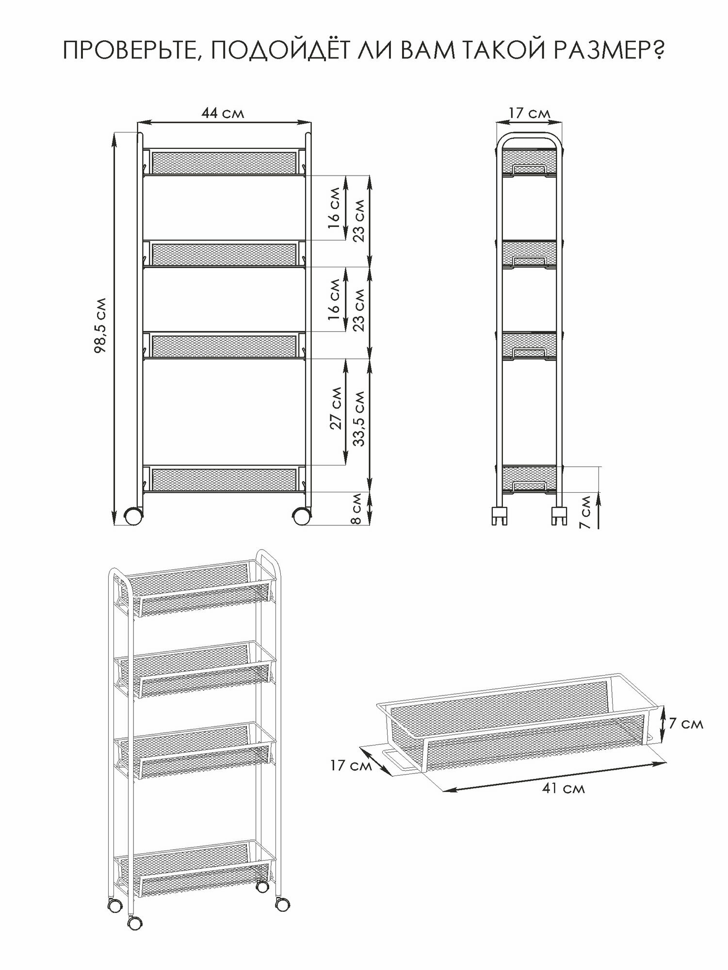 | Дополнительная информация | допустимая нагрузка до 10 кг на корзину |