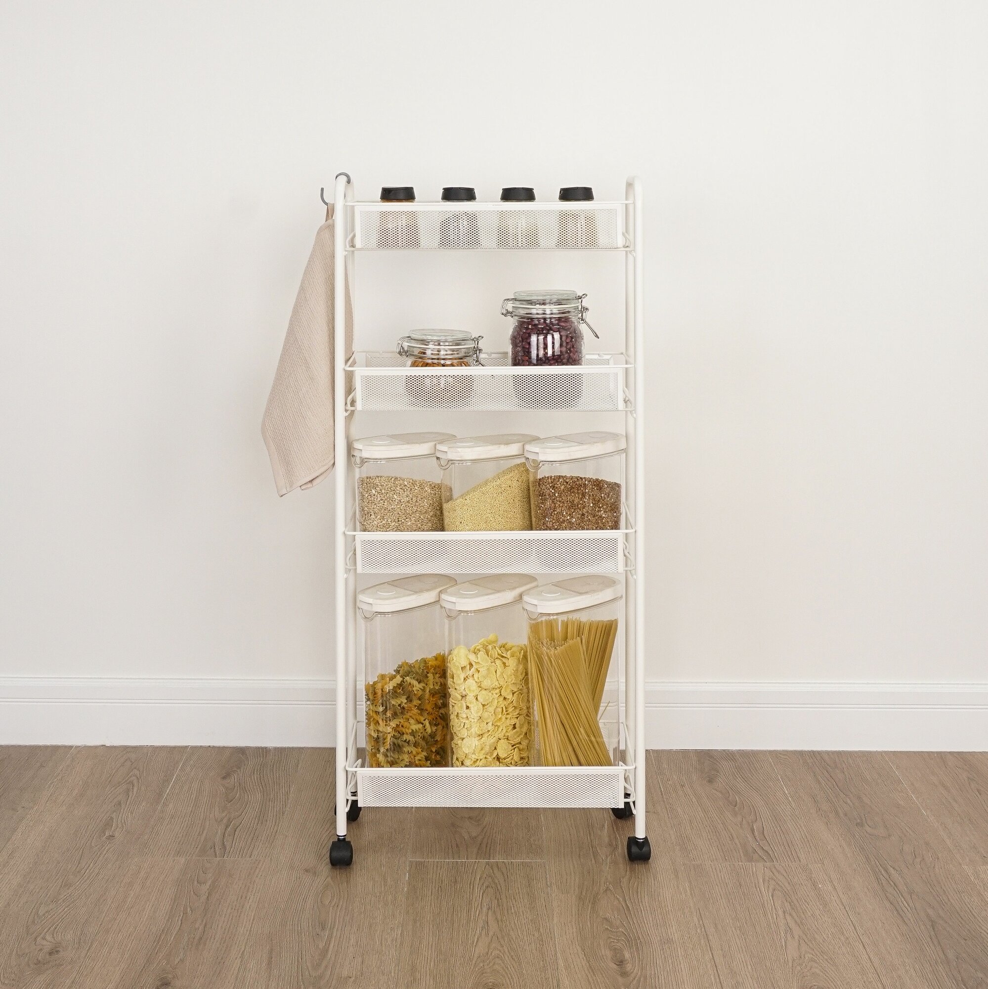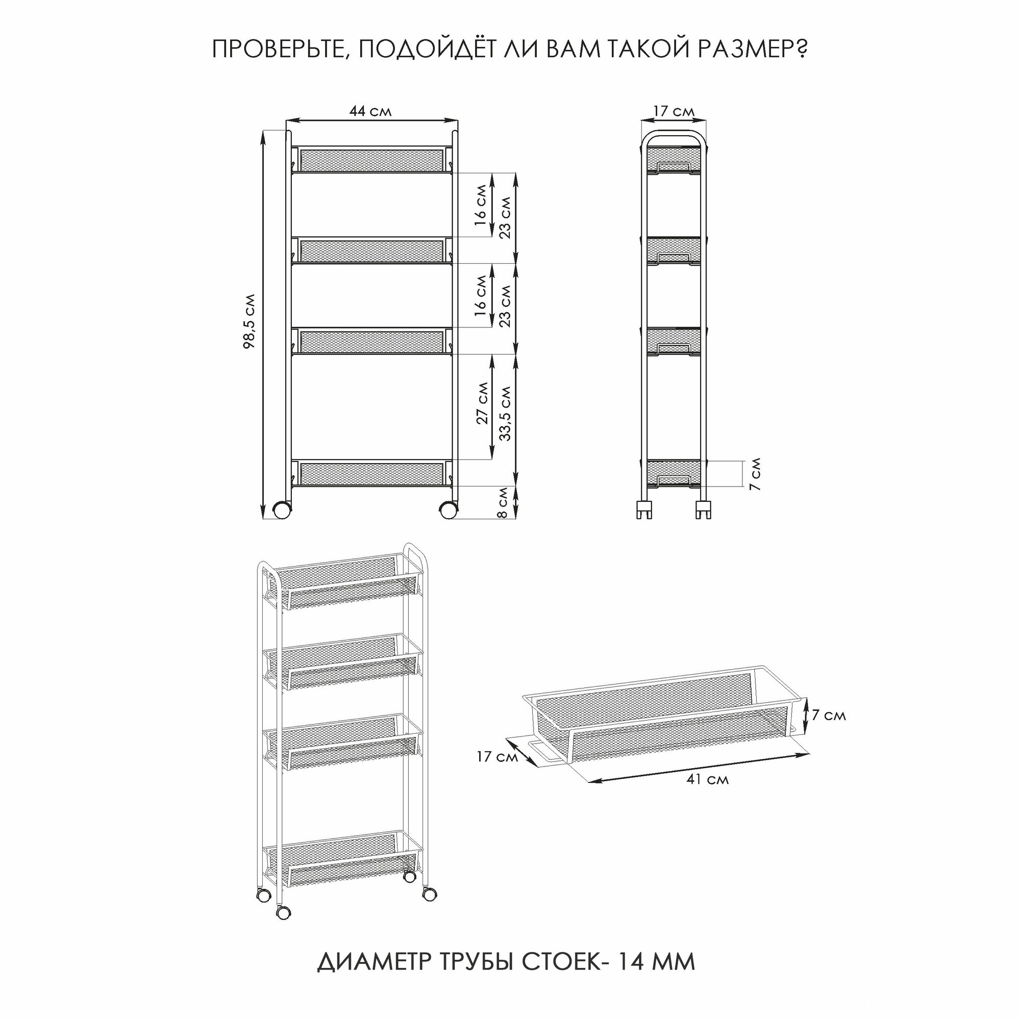 10 цен на Этажерка ЗМИ Ладья 14К для кухни на колесиках металлическая узкая, белая
