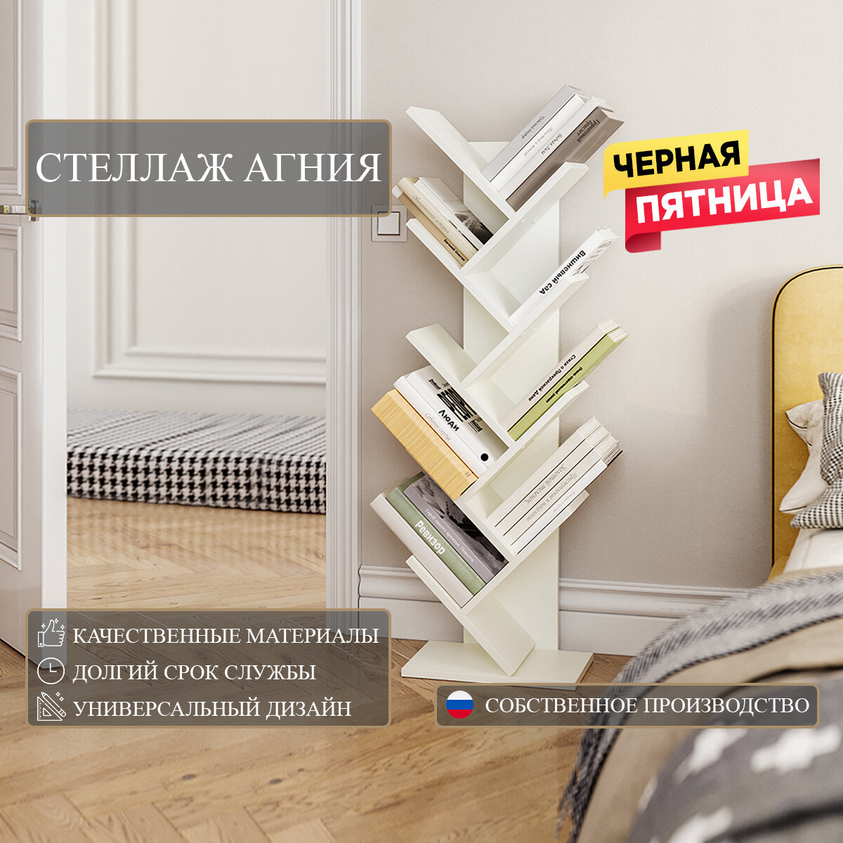 Стеллаж Граникум "Агния" напольный, стильный дизайн, 8 секций, белый, ЛДСП информация: