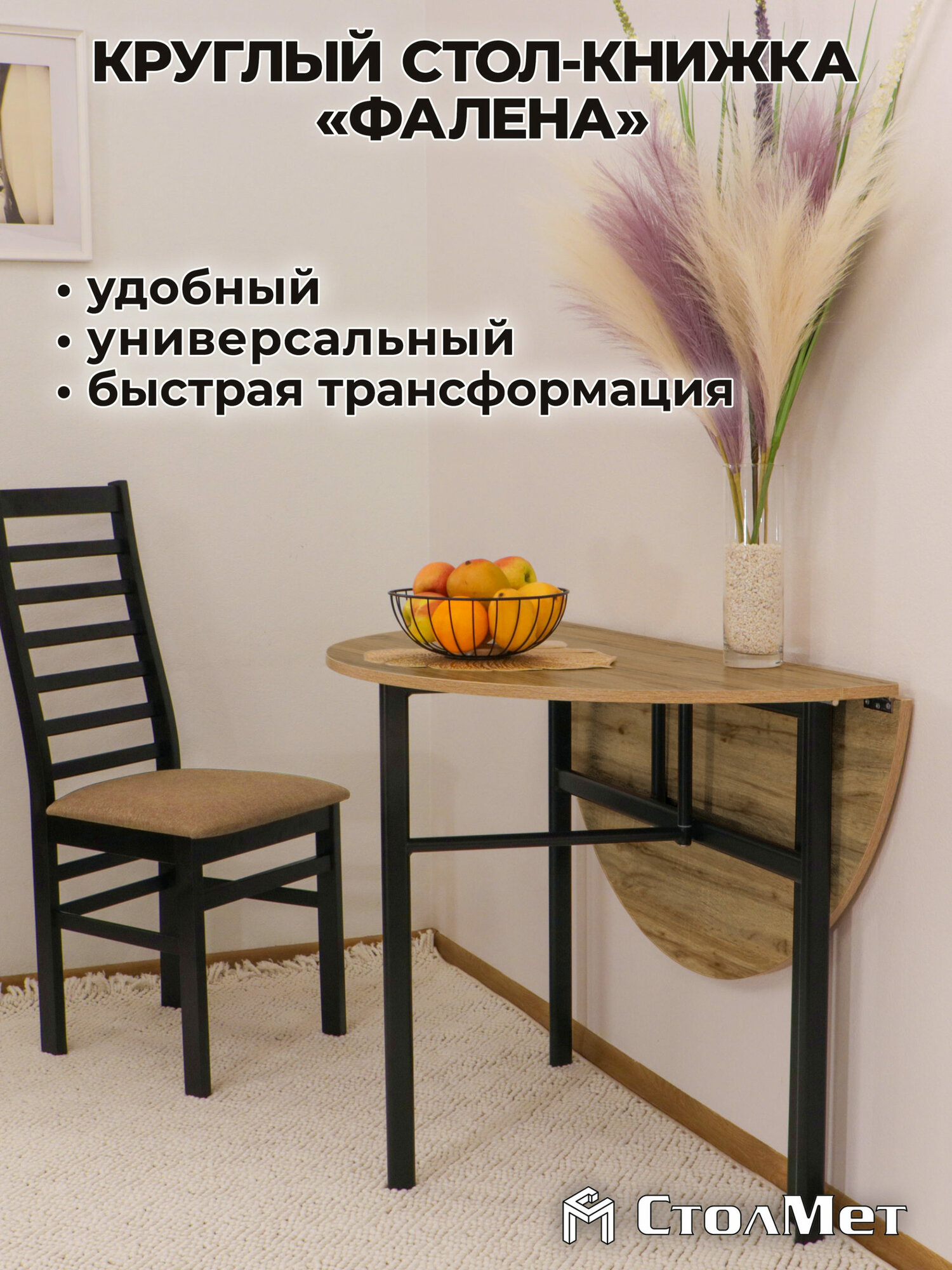 Круглый стол-книжка «Фалена», 100, дуб сонома, черный