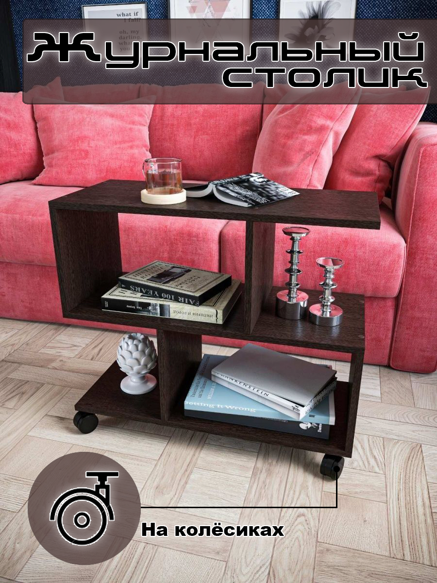 Отзывы на Столик журнальный на колесиках от бренда "Мебель от Прудникова", 70х30х62 см, венге