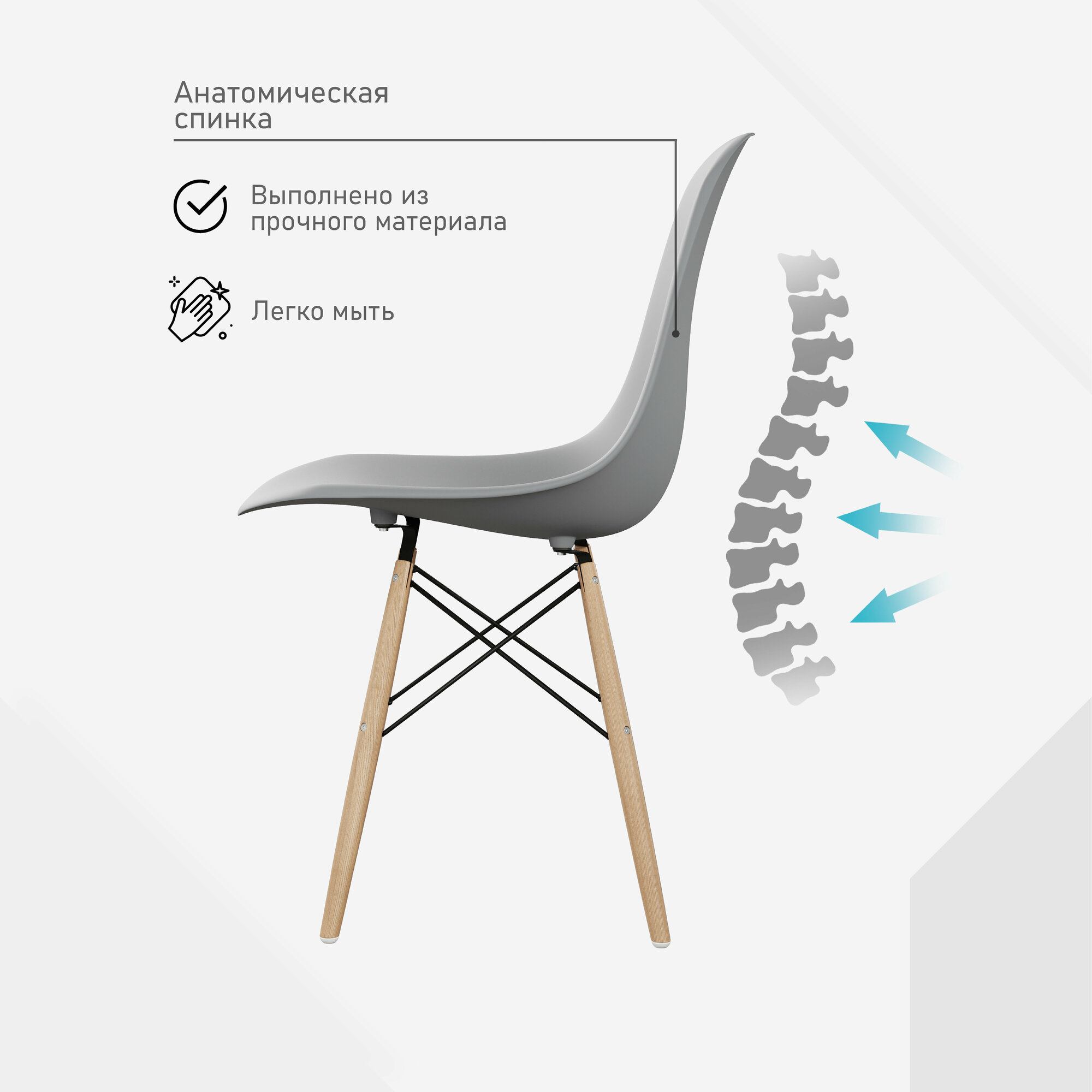 Отзывы на Стул для кухни со спинкой СтулБержи EAMES DSW, деревянные ножки, серый, пластиковый