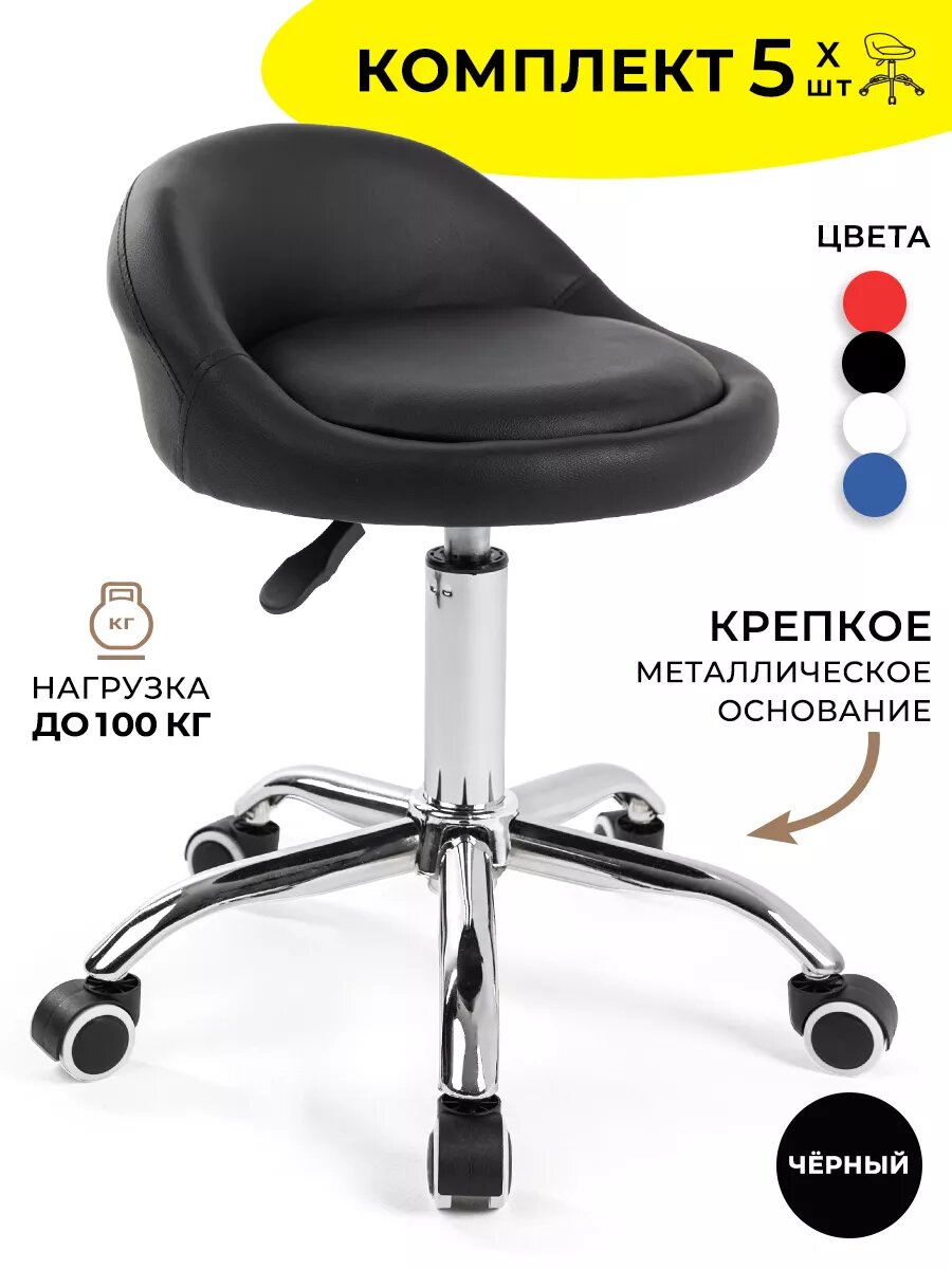 10 цен на Стул мастера мягкий на колесиках со спинкой 5 шт