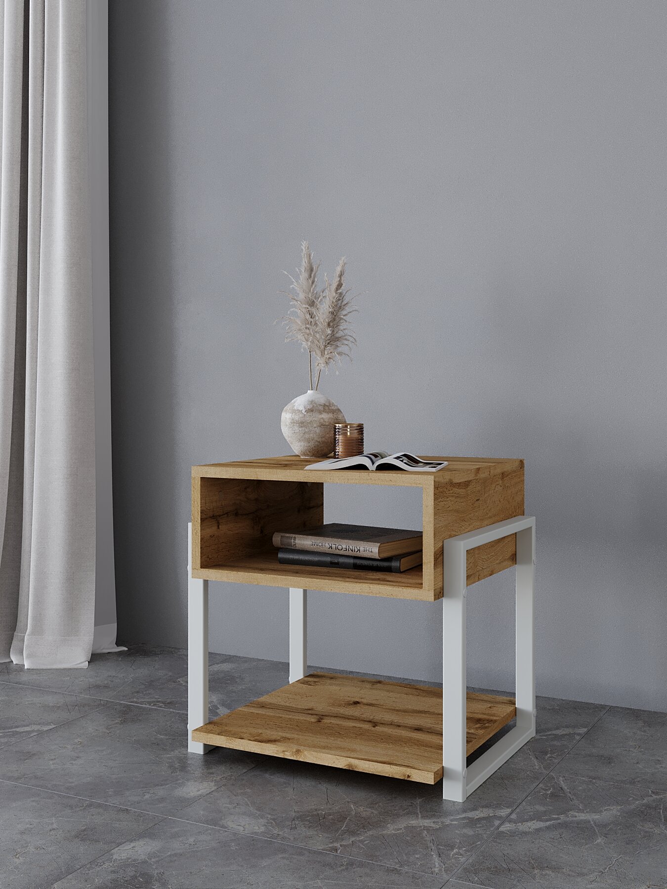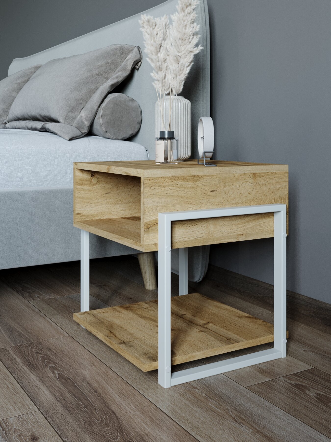 Тумба прикроватная для спальни, гостиной лофт KM LOFT белый/дуб вотан информация: