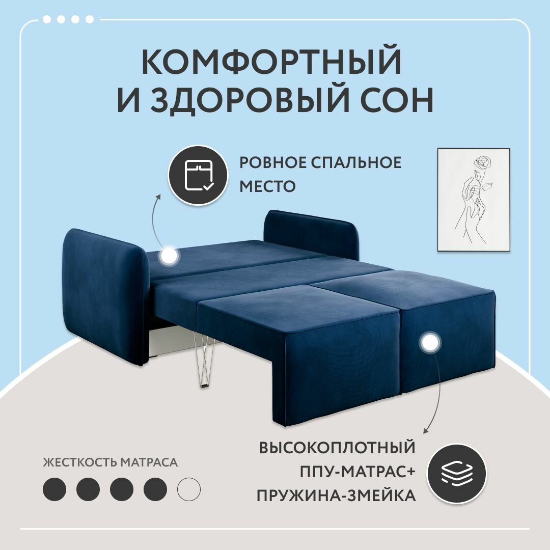 Отзывы на Диван-кровать раскладной прямой Портленд мини, аккордеон-евро, велюр, синий, 163х90х80