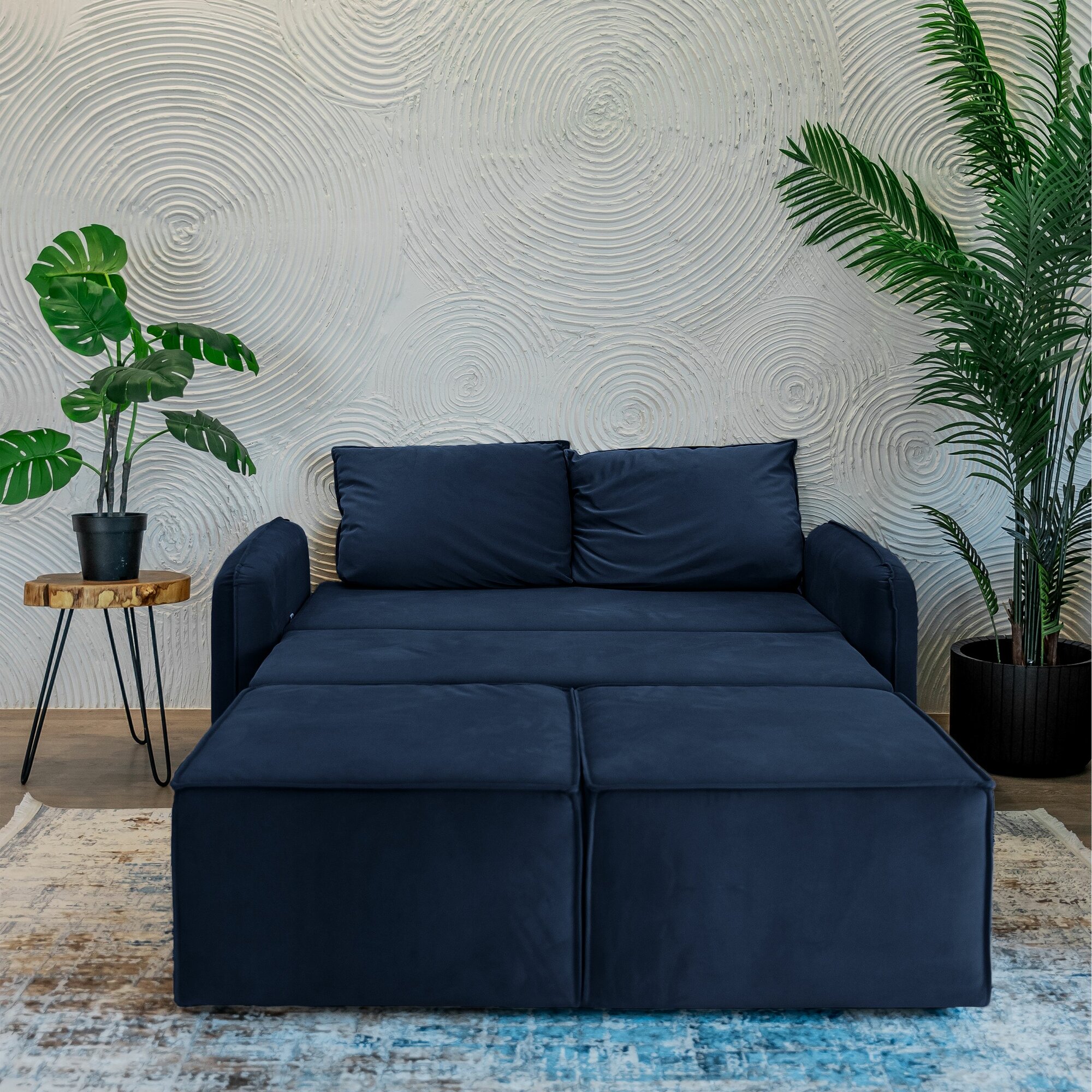 Диван-кровать раскладной прямой Портленд мини в гостиную, аккордеон-евро, велюр, синий, 163х90х80 48 589 ₽