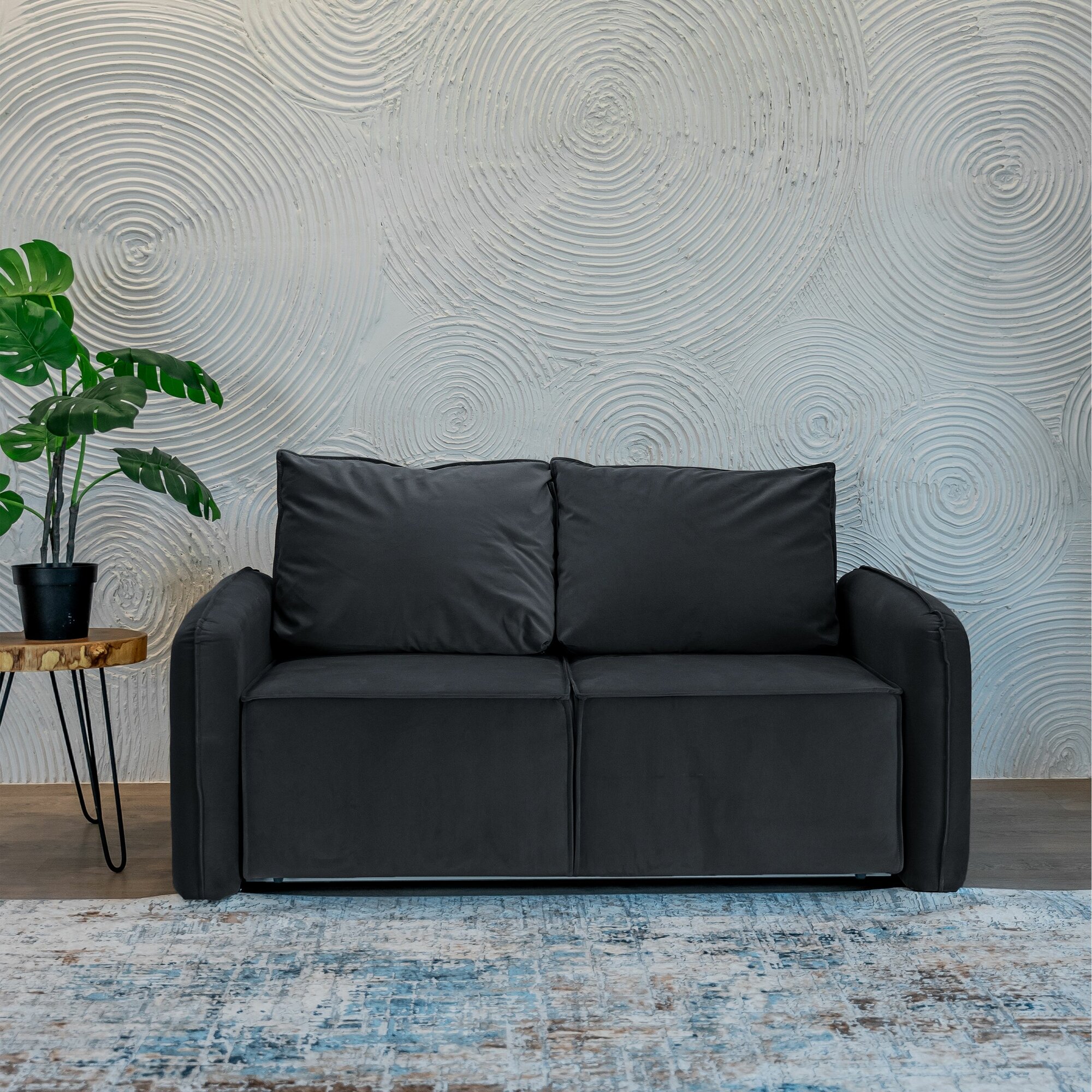 Диван-кровать раскладной прямой Портленд мини в гостиную, аккордеон-евро, велюр, серый, 163х90х80 41 689 ₽