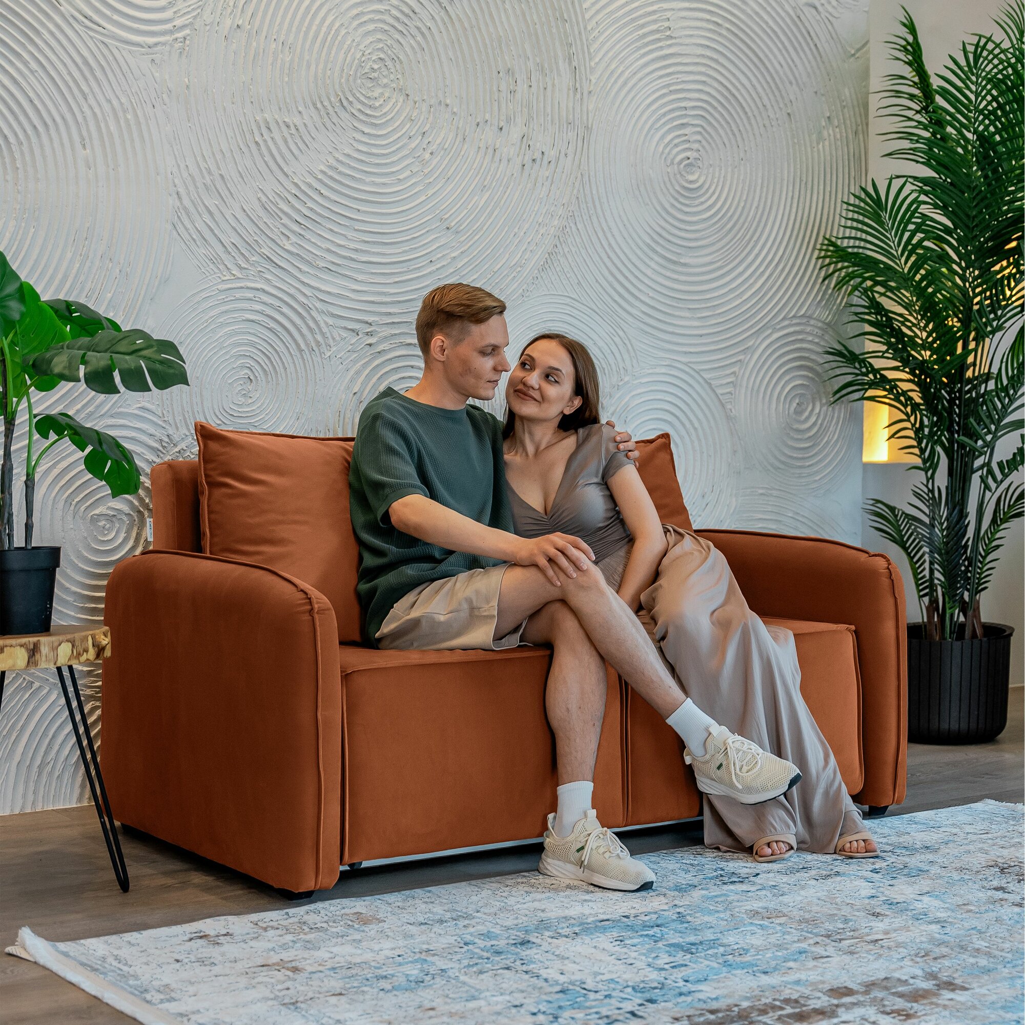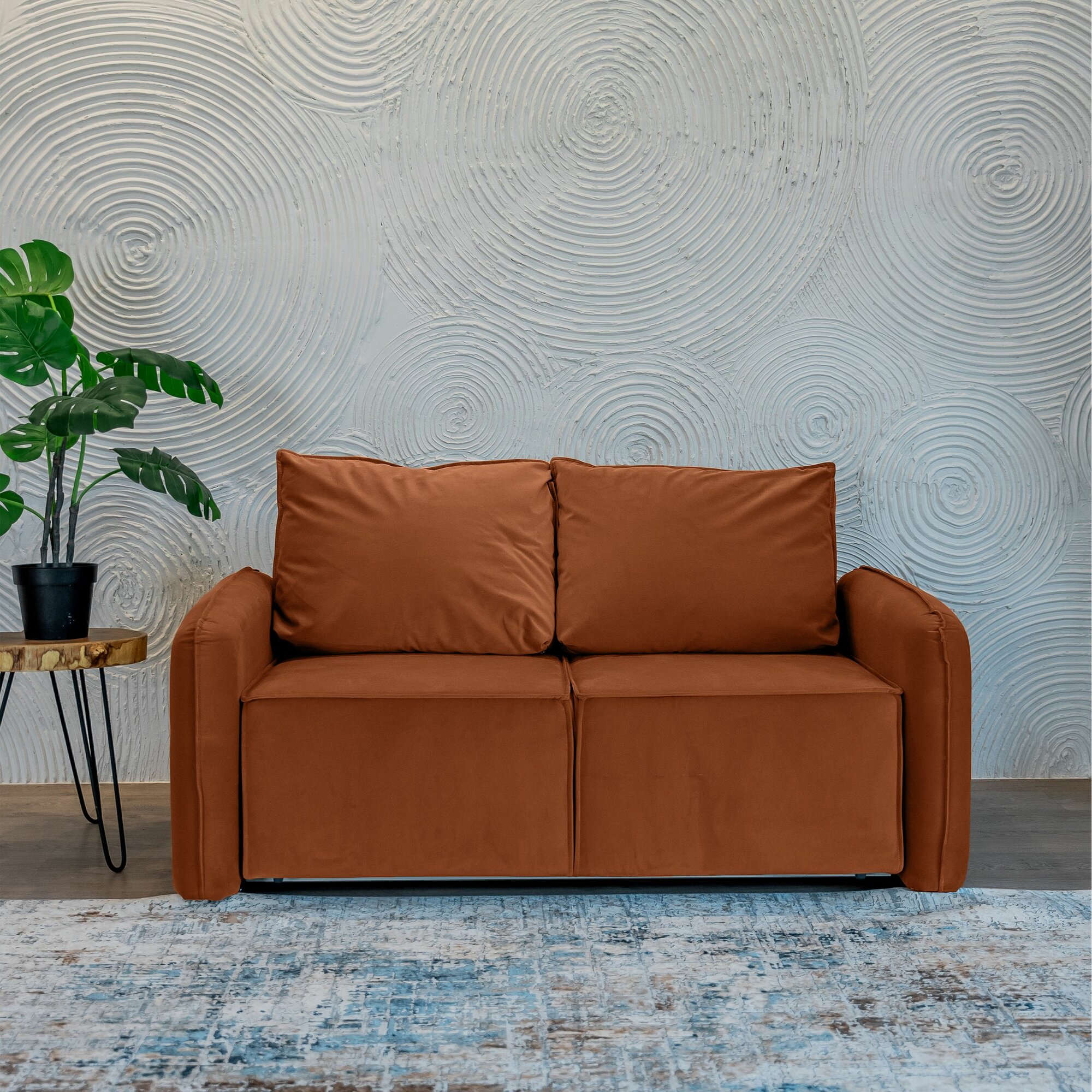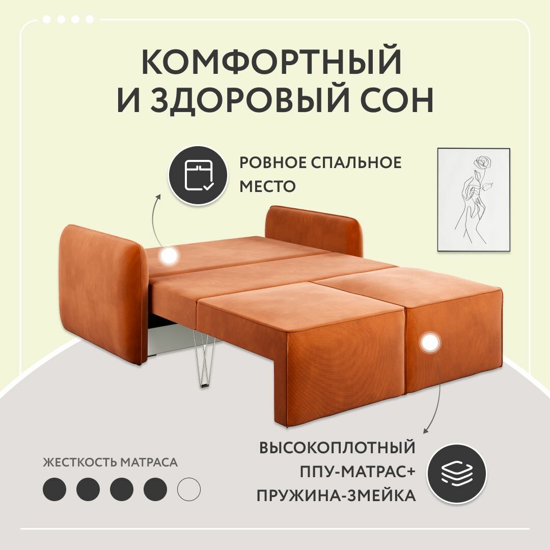 Диван-кровать раскладной прямой Dee One Портленд Мини , велюр, 163х90х80, терракотовый 46 239 ₽