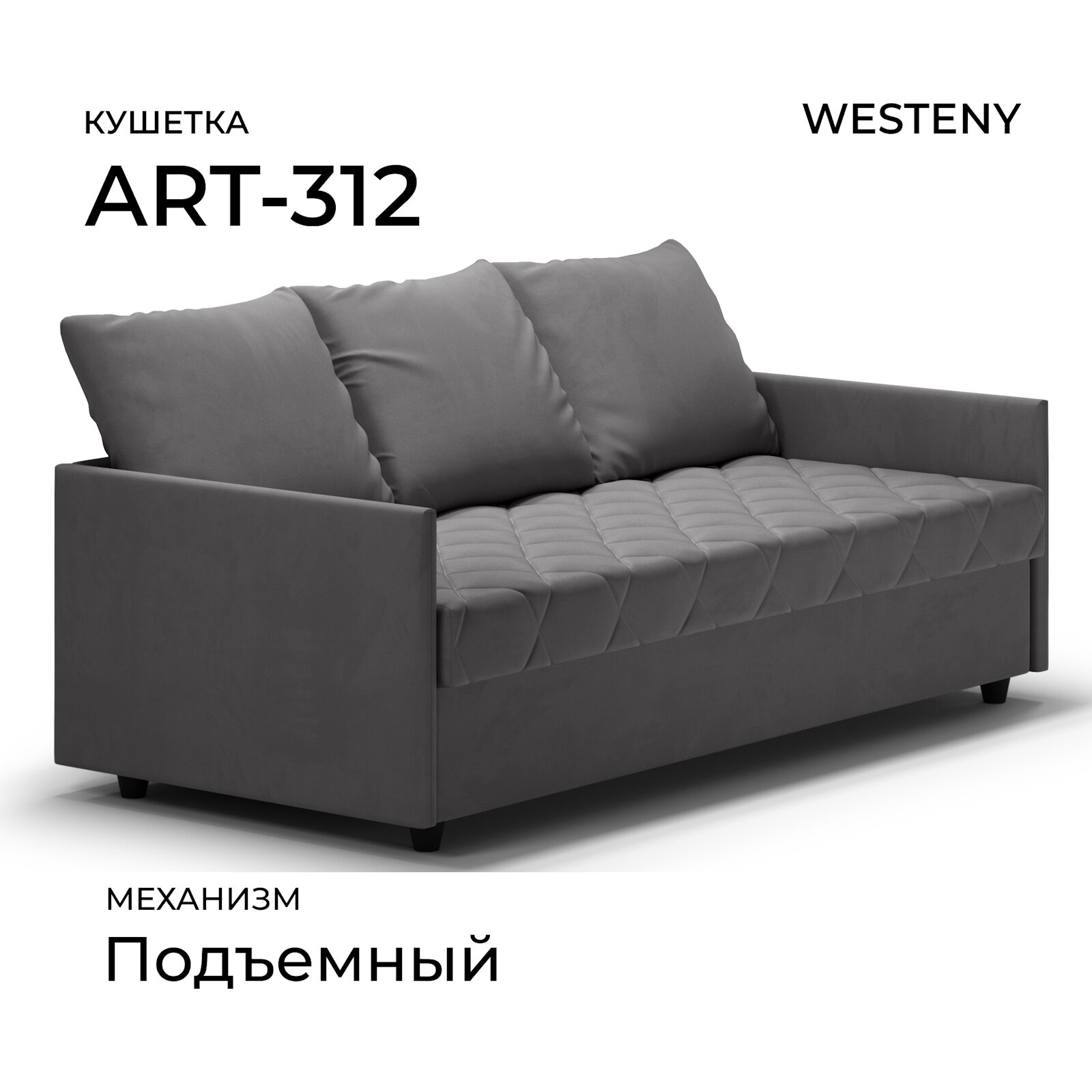 Кушетка WESTENY "ART-312 " 200x94x62, 90x190, 1 место, темно-серый велюр информация: