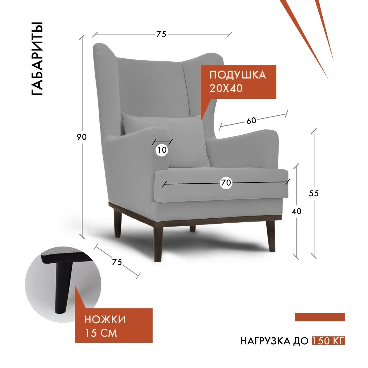 Кресло Оскар мягкое для отдыха в гостиную, с подушкой, на ножках, велюр Mgray 18