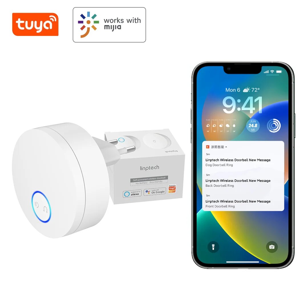 Беспроводной дверной звонок Linptech без батареек с Wi-Fi и функцией интеллектуального управления памятью без батареек, tuya EU plug 2 277 ₽