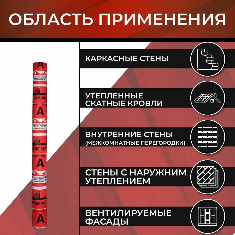 Ветроизоляция Премиум класса "Ардманол А", 60 м2 (1,6м*38м) , плёнка строительная. информация: