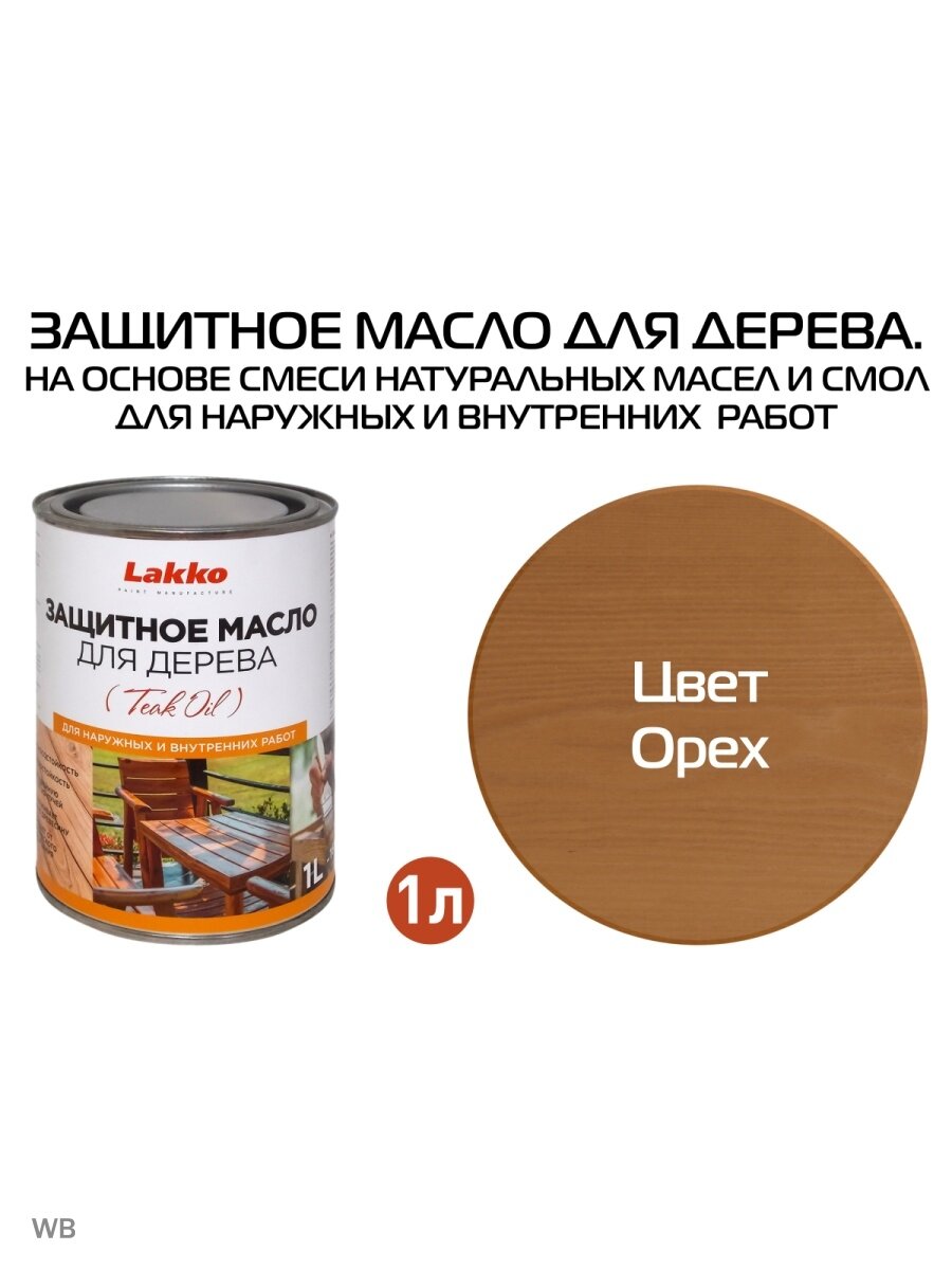 Защитное масло Lakko для дерева для наружных и внутренних работ, орех, 1 л информация:
