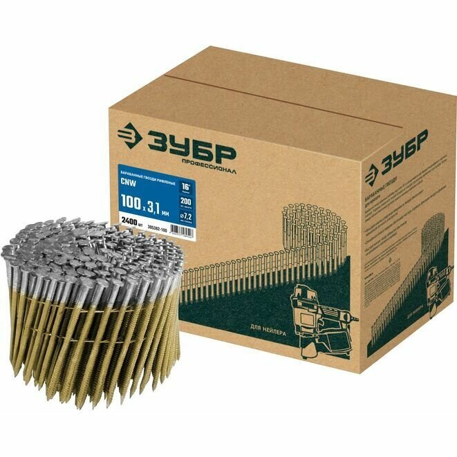 ЗУБР CNW 100 х 3.1 мм, барабанные гвозди рифленые, 2400 шт (305382-100) 4 099 ₽