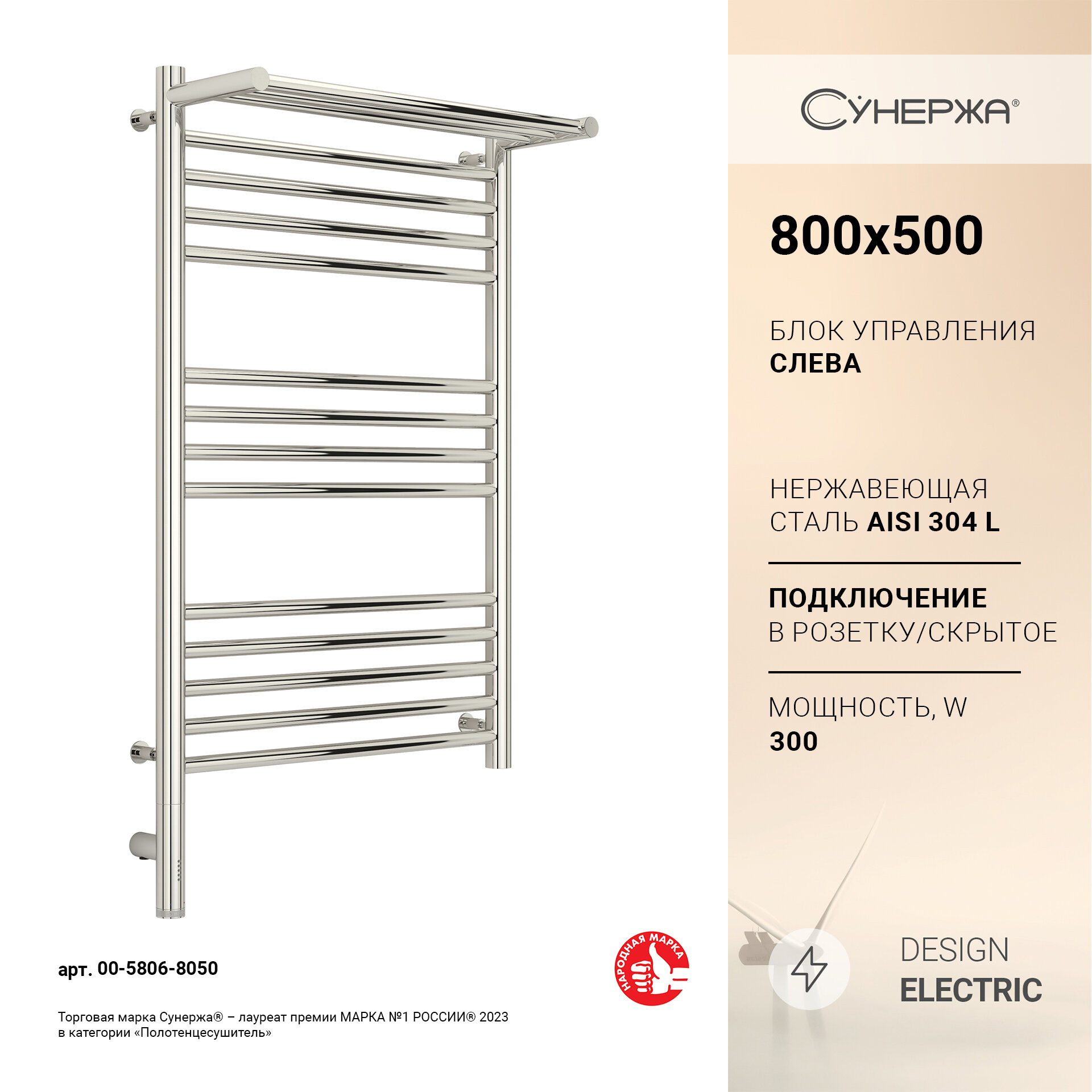 Электрический полотенцесушитель Сунержа Богема 3.0 с полкой 800x500 МЭМ Лев. арт. 00-5806-8050 информация: