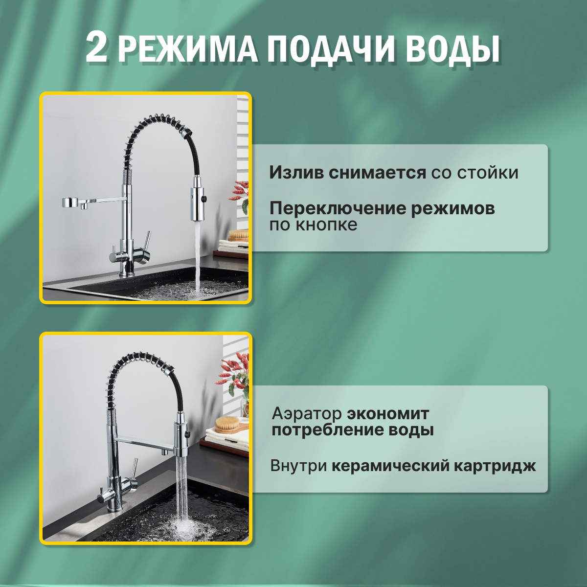 Смеситель кран для кухни с фильтром для питьевой воды, с гибким изливом, кран кухонный хром, латунь 6 599 ₽
