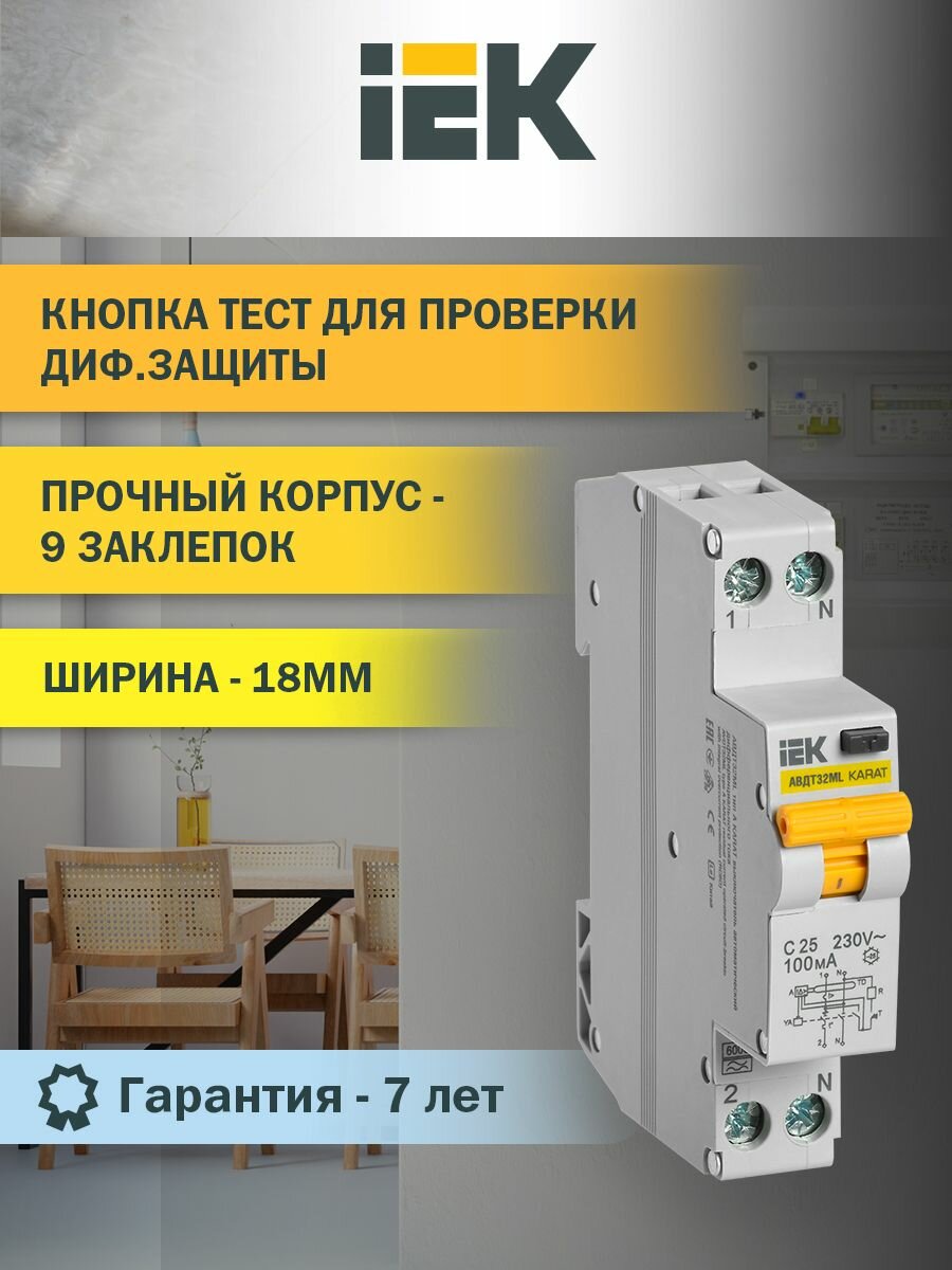Отзывы на IEK KARAT Дифференциальный автоматический выключатель АВДТ32ML тип A С25 100мА, IEK, арт.MVD12-1-025-C-100-A