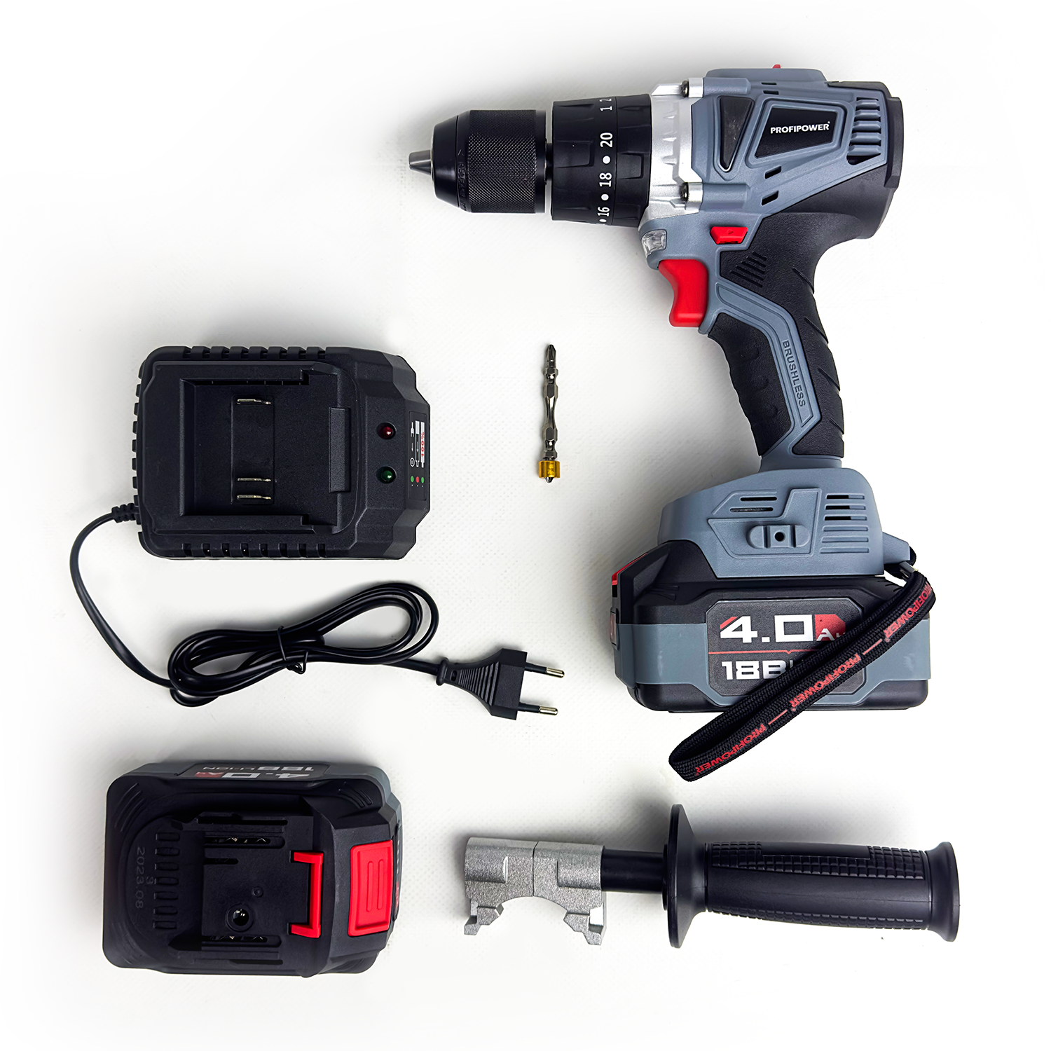 Дрель - шуруповерт аккумуляторная PROFIPOWER MKBL-18B бесщеточная, T0056 (18В, Li-ion-2шт,2.0Ач, 40Нм, З/У, 10мм, магнитная бита, кейс)