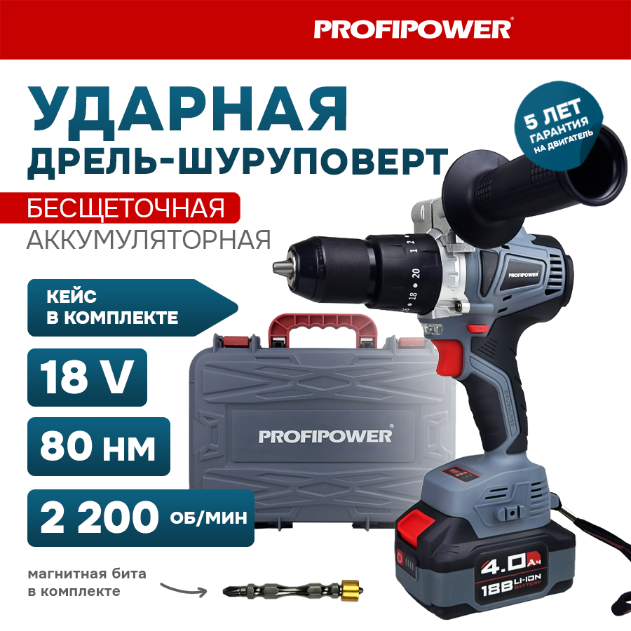 Дрель шуруповёрт Profipower ударный бесщёточный