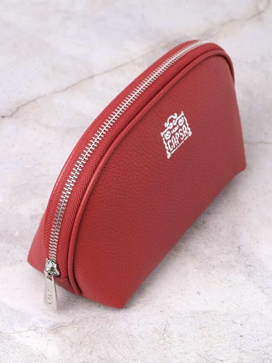 Отзывы на Косметичка женская Capsa из натуральной кожи с большим отделением на молнии и внутренним карманом, красный