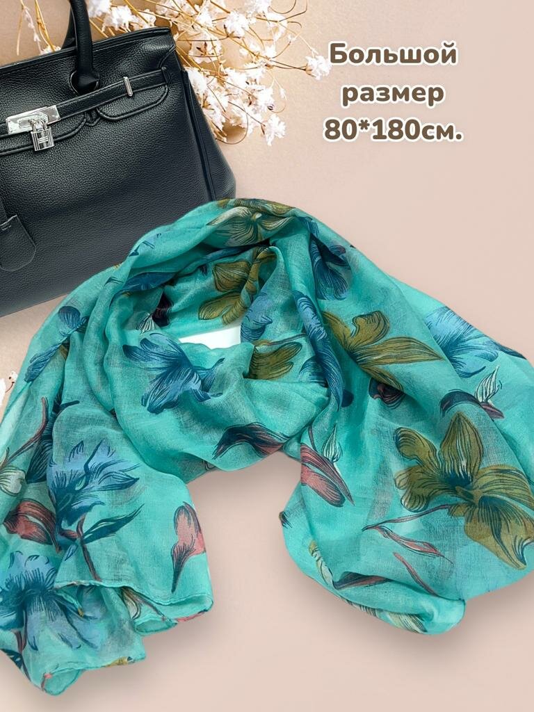 10 цен на Палантин Goldengala /Вискозный хлопок 100%/ Большой размер 70*180 см./Лилии 11