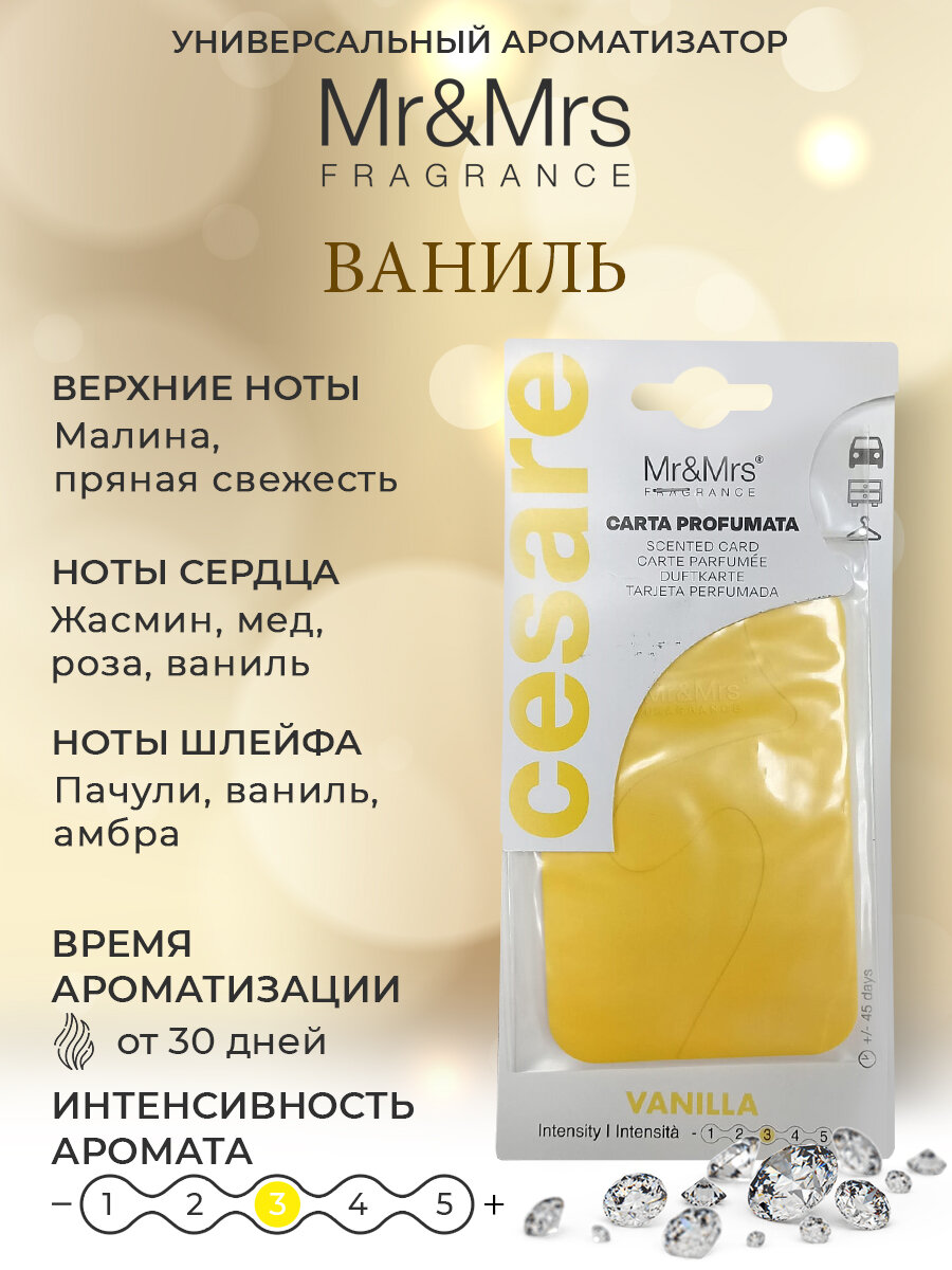 Ароматизатор универсальный белья Mr&Mrs Fragrance Cesare "Ваниль" Vanilla, желтый информация: