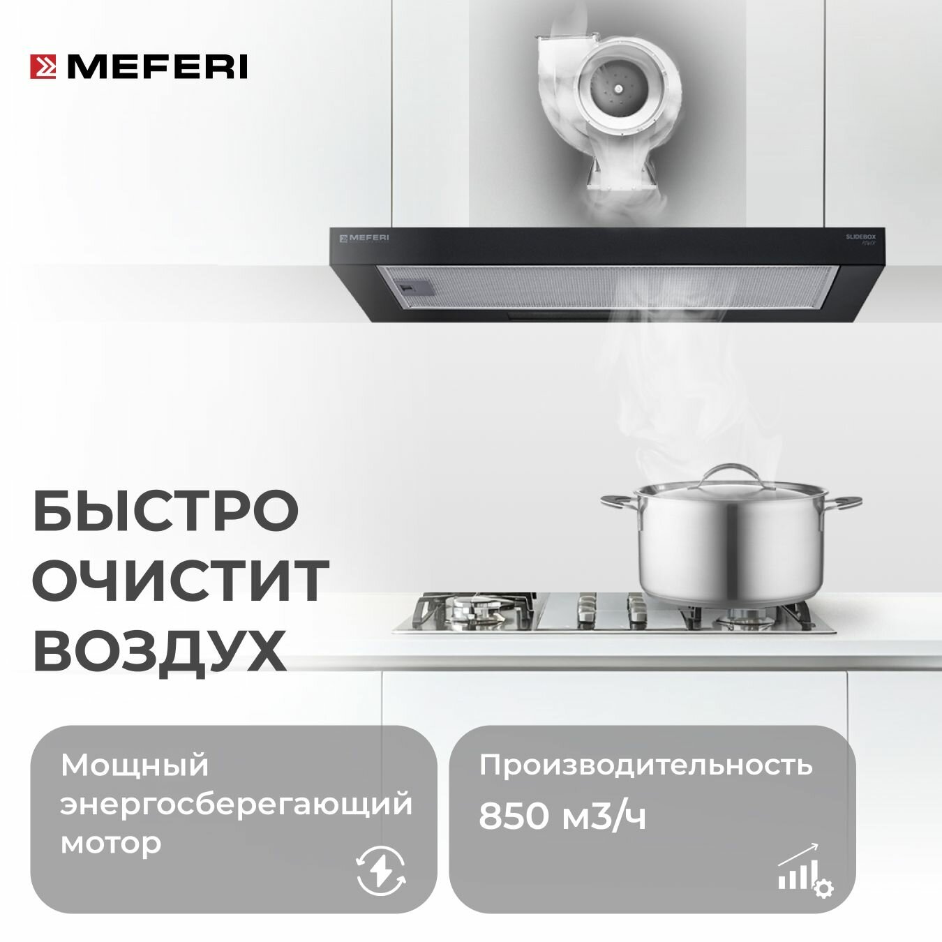 10 цен на Телескопическая встраиваемая вытяжка для кухни MEFERI SLIDEBOX60BK POWER с выдвижным козырьком, 60 см, черный, производительность 850 м3/час