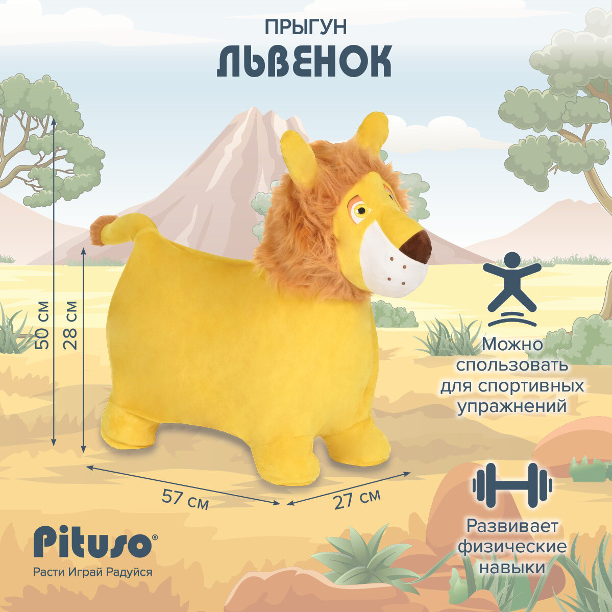 Отзывы на Игрушка-попрыгун Pituso Львёнок,со звуковым эффектом, с насосом и съёмным плюшевым чехлом, 57х27х50 см