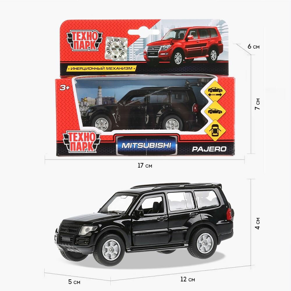 10 цен на Машинка детская Mitsubishi Pajero 12 см, Технопарк, черная, открываются двери и багажник, металлический корпус