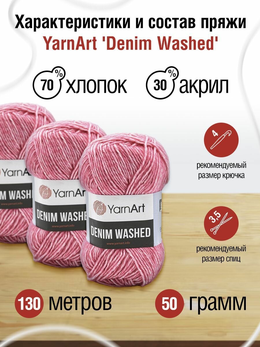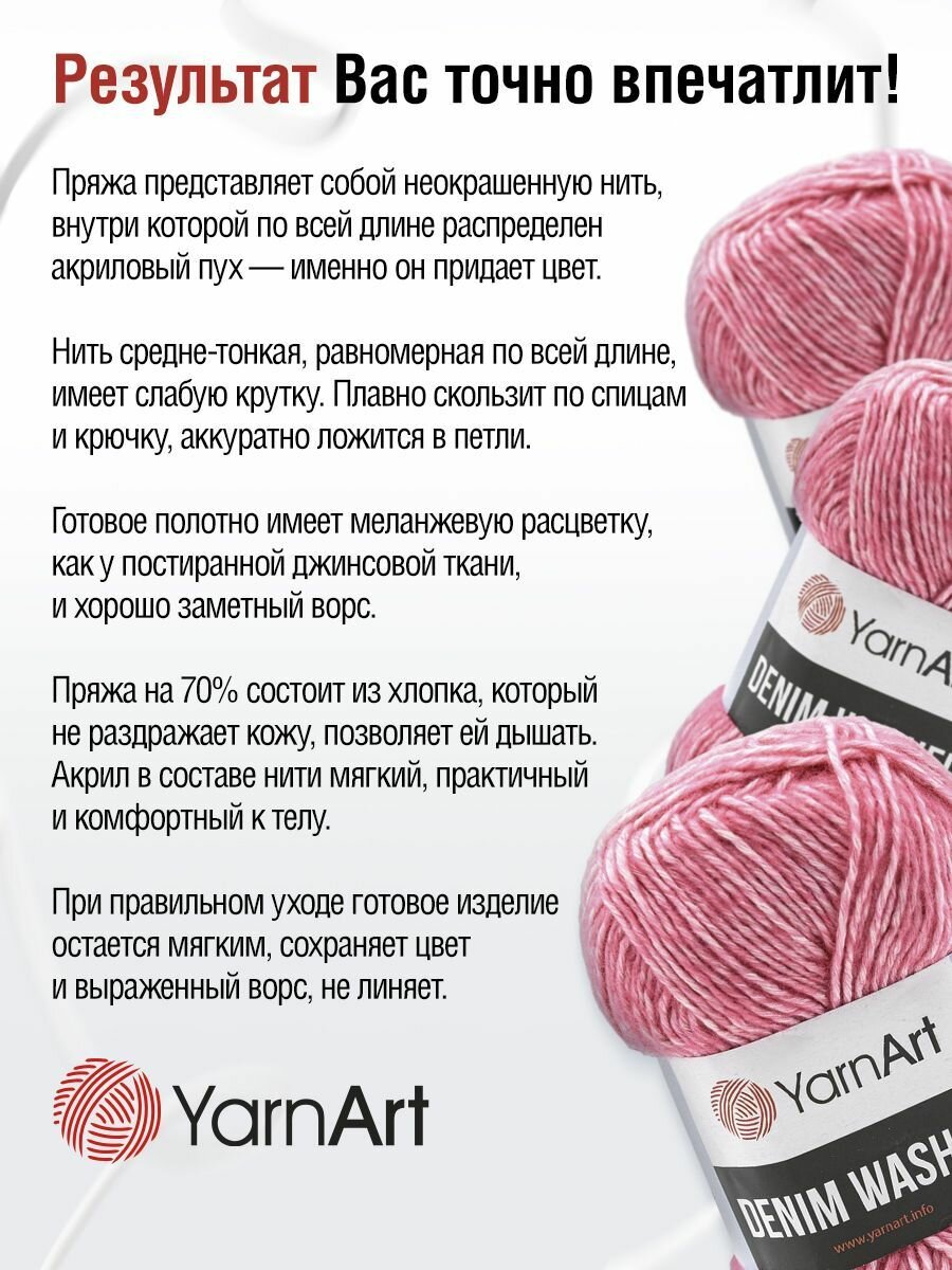 Пряжа для вязания YarnArt 'Denim Washed' 50г, 130м (70% хлопок, 30% акрил) (905 розовый), 10 мотков информация: