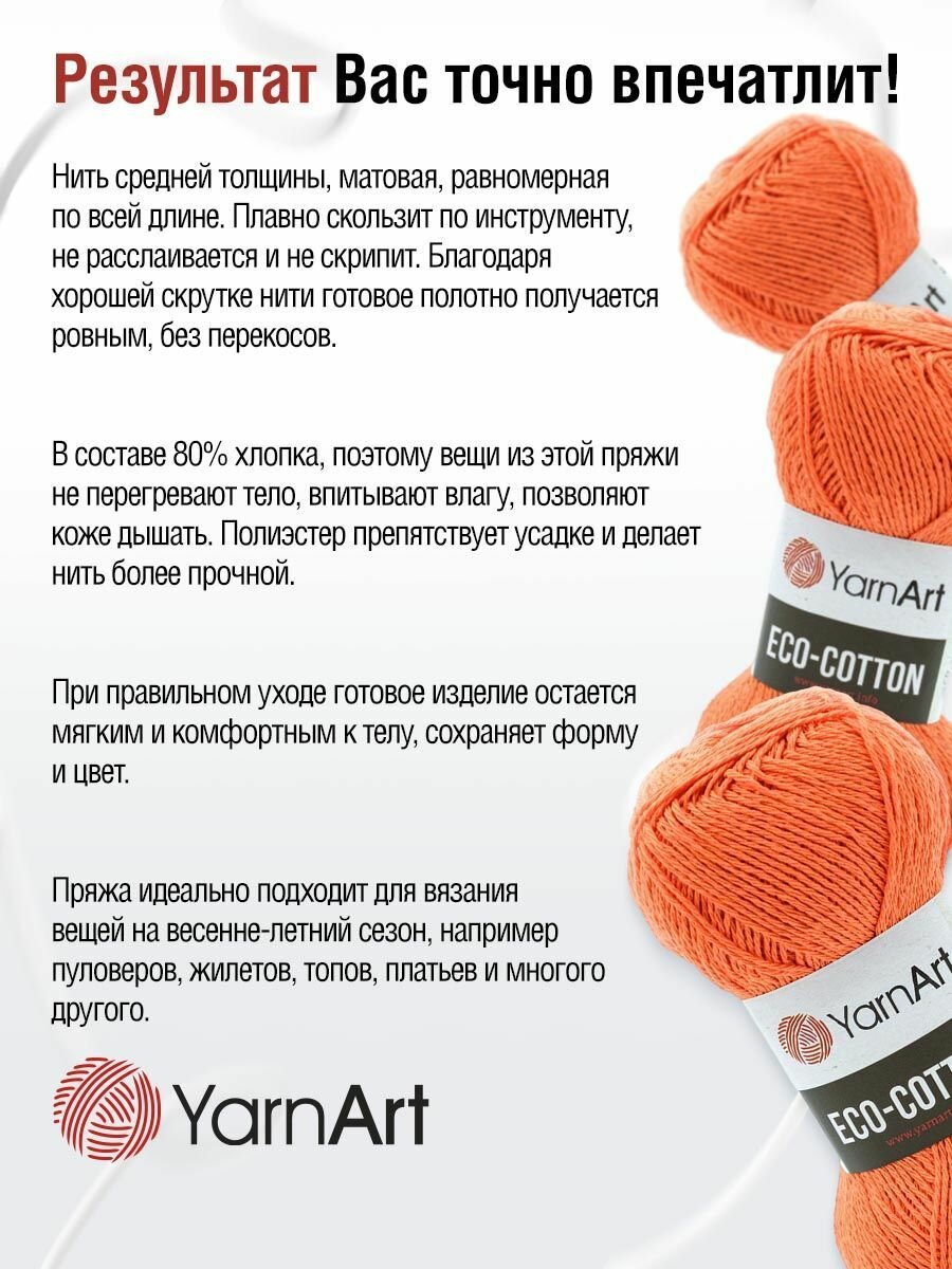 10 цен на Пряжа для вязания YarnArt 'Eco Cotton' 100г, 220м (80% хлопок, 20% полиэстер) (800 оранжевый), 5 мотков