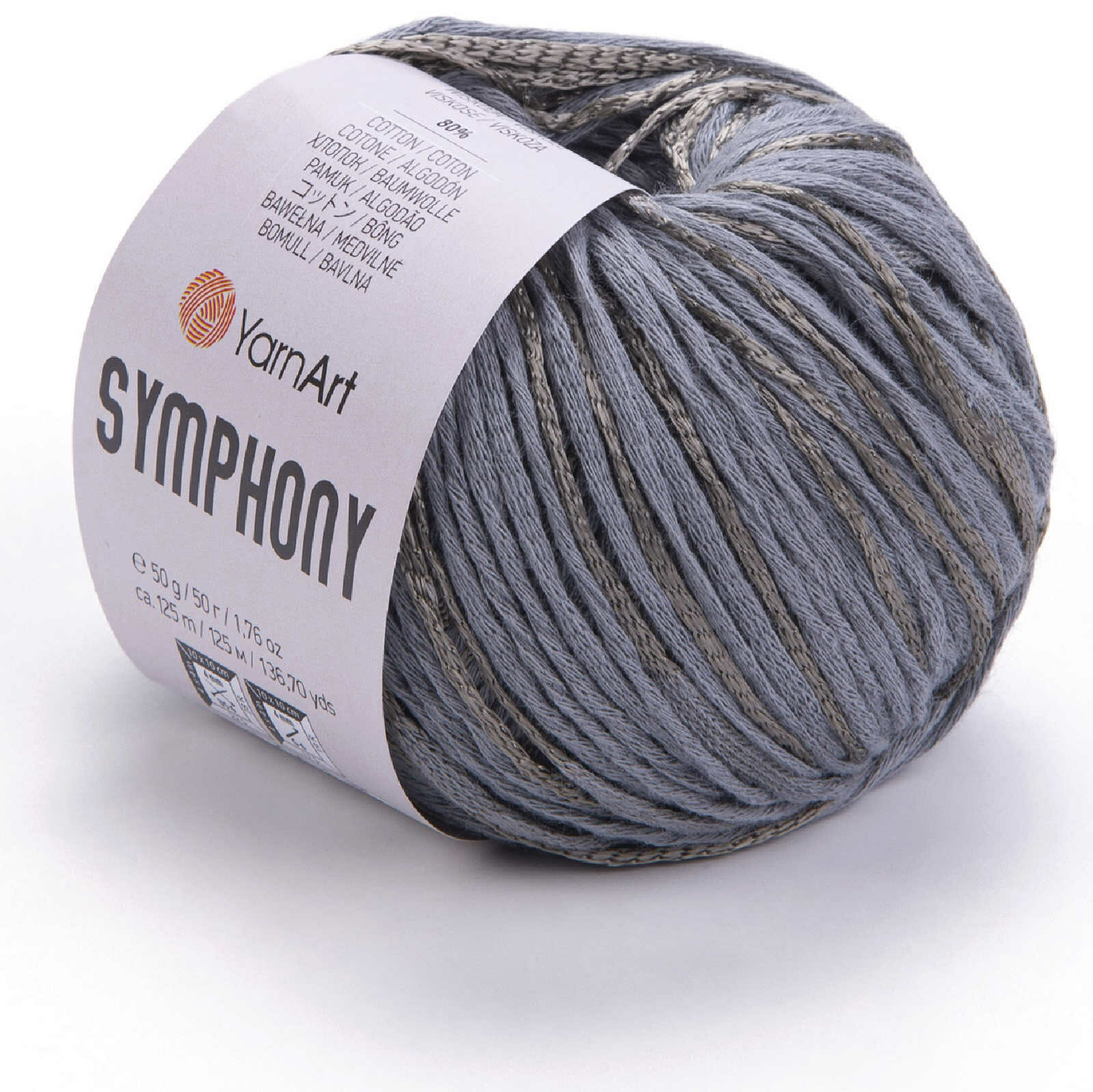 Пряжа YarnArt Symphony серый (2108), 80%хлопок/20%вискоза, 125м, 50г, 2шт информация: