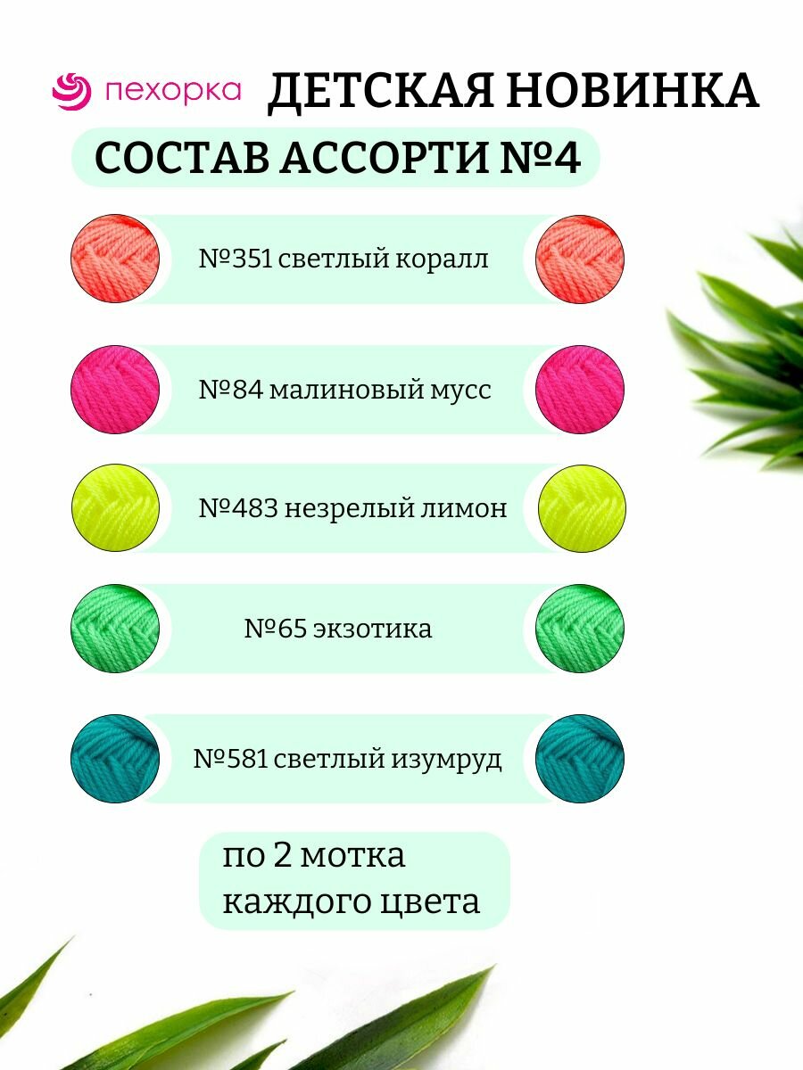 Пряжа для вязания Детская новинка ассорти №4 100% высокобъемный акрил 50г 200м 10шт информация:
