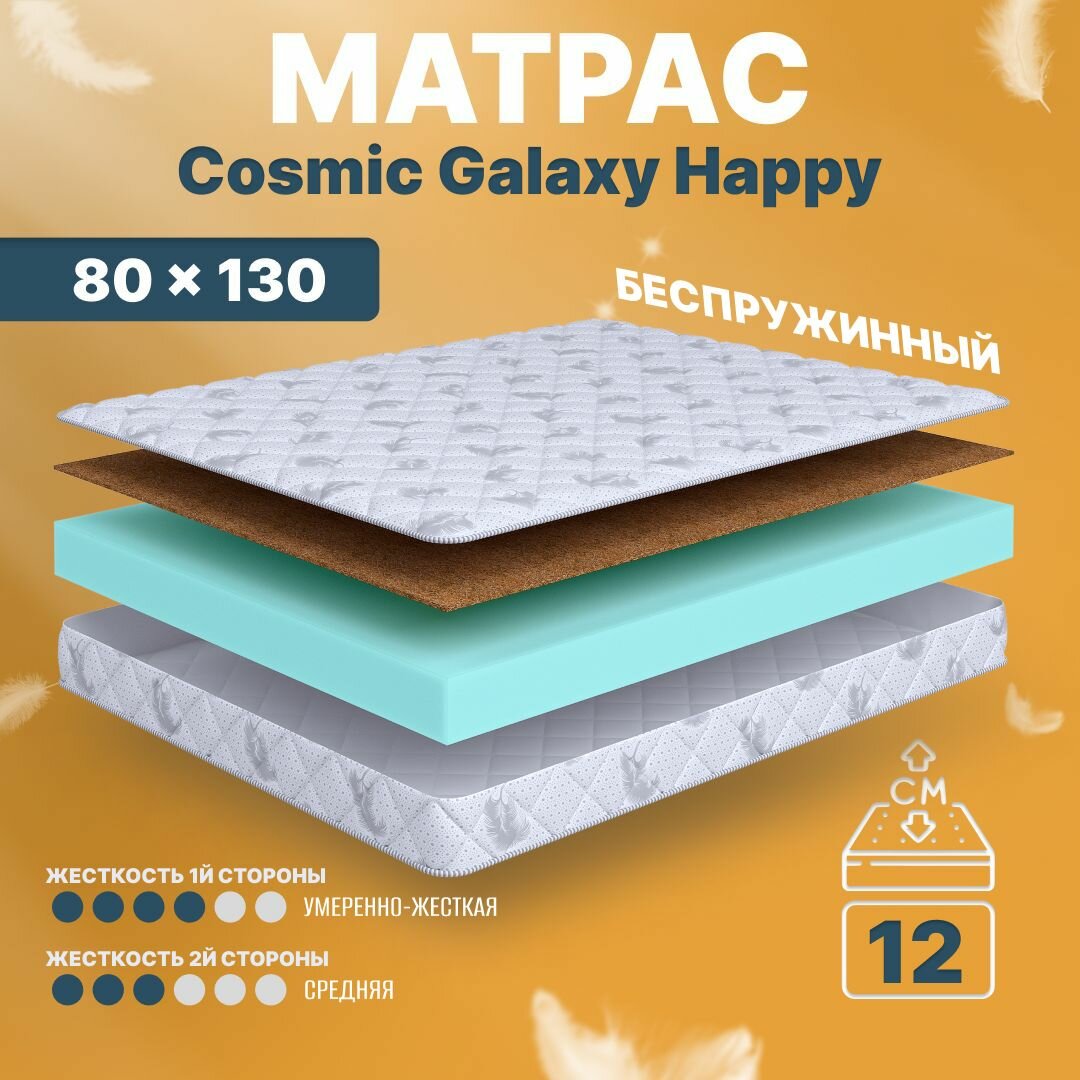 10 цен на ДетскийМатрас анатомический Cosmic Galaxy Happy, 80х130, 12 см, беспружинный, в кроватку, средней жесткости