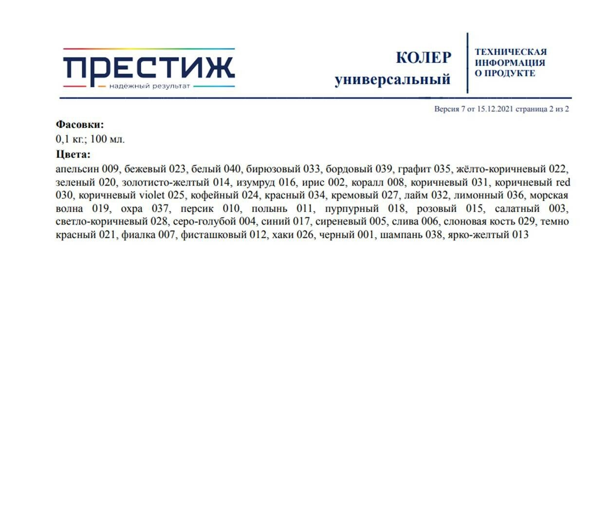 | Дополнительная информация | Вводить в краски не более 10%. |