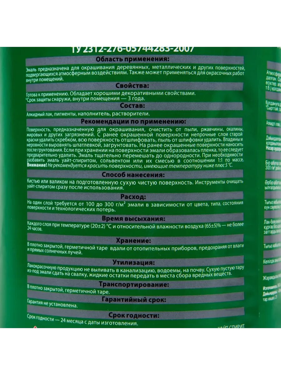 Эмаль ПФ-115 полуматовая цвет зелёный 0.8 кг информация:
