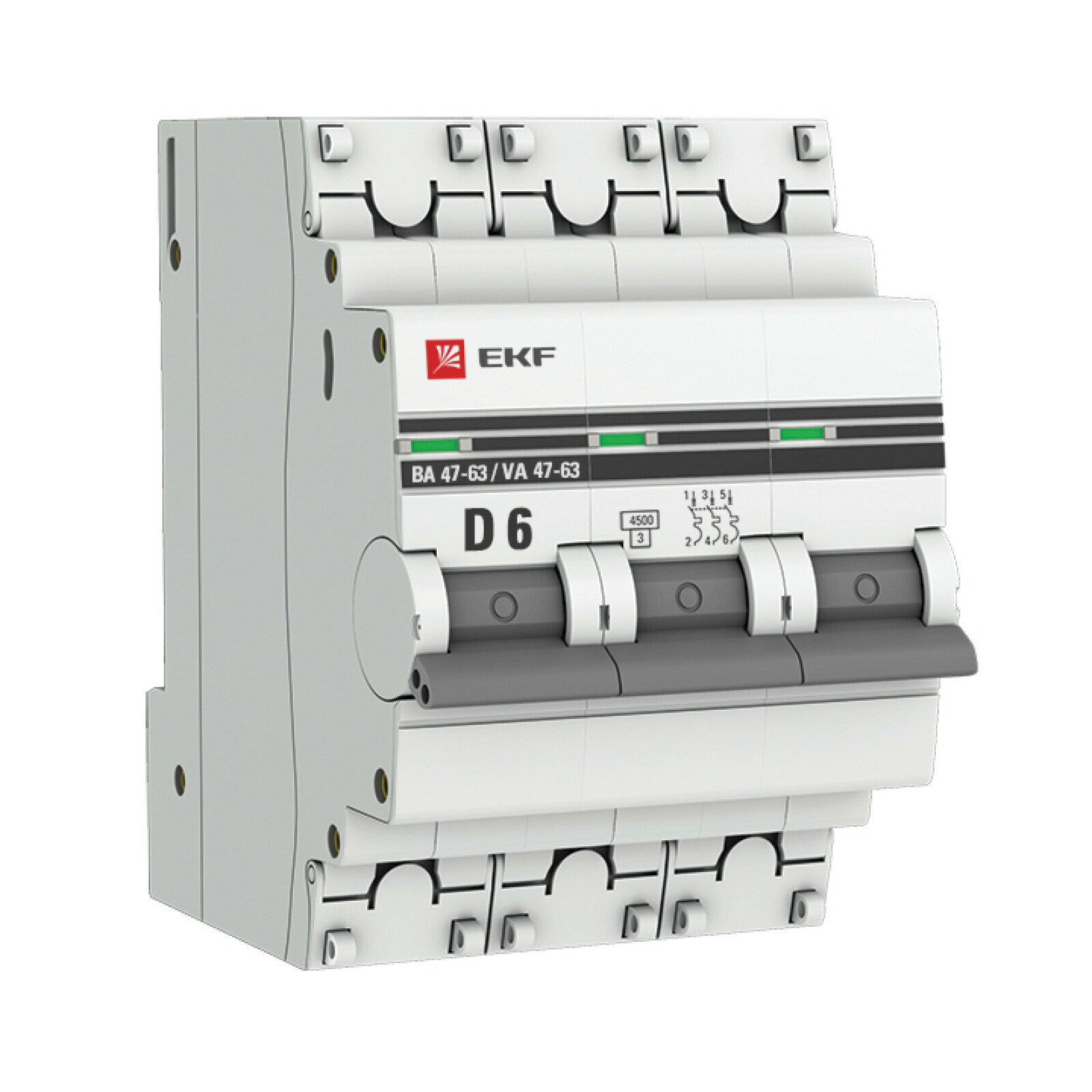 Автоматический выключатель 3P 6А (D) 4,5kA ВА 47-63, EKF PROxima информация: