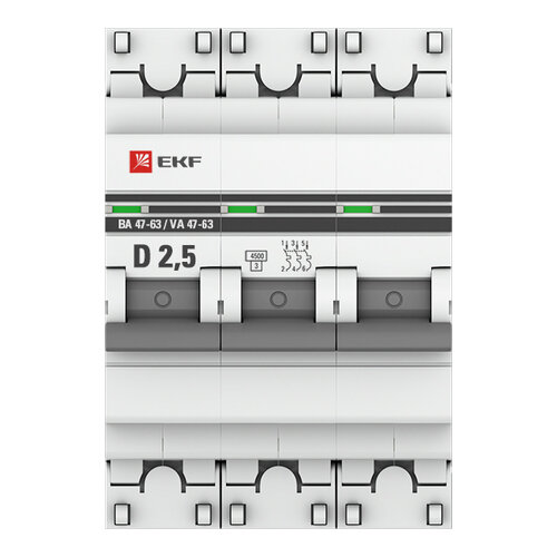 Автоматический выключатель 3P 2,5А (D) 4,5kA ВА 47-63 EKF PROxima информация: