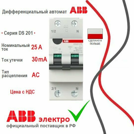 Отзывы на DS201CR C25 AC30 дифференциальный автомат 6 кА ABB 2CSR755080R1254