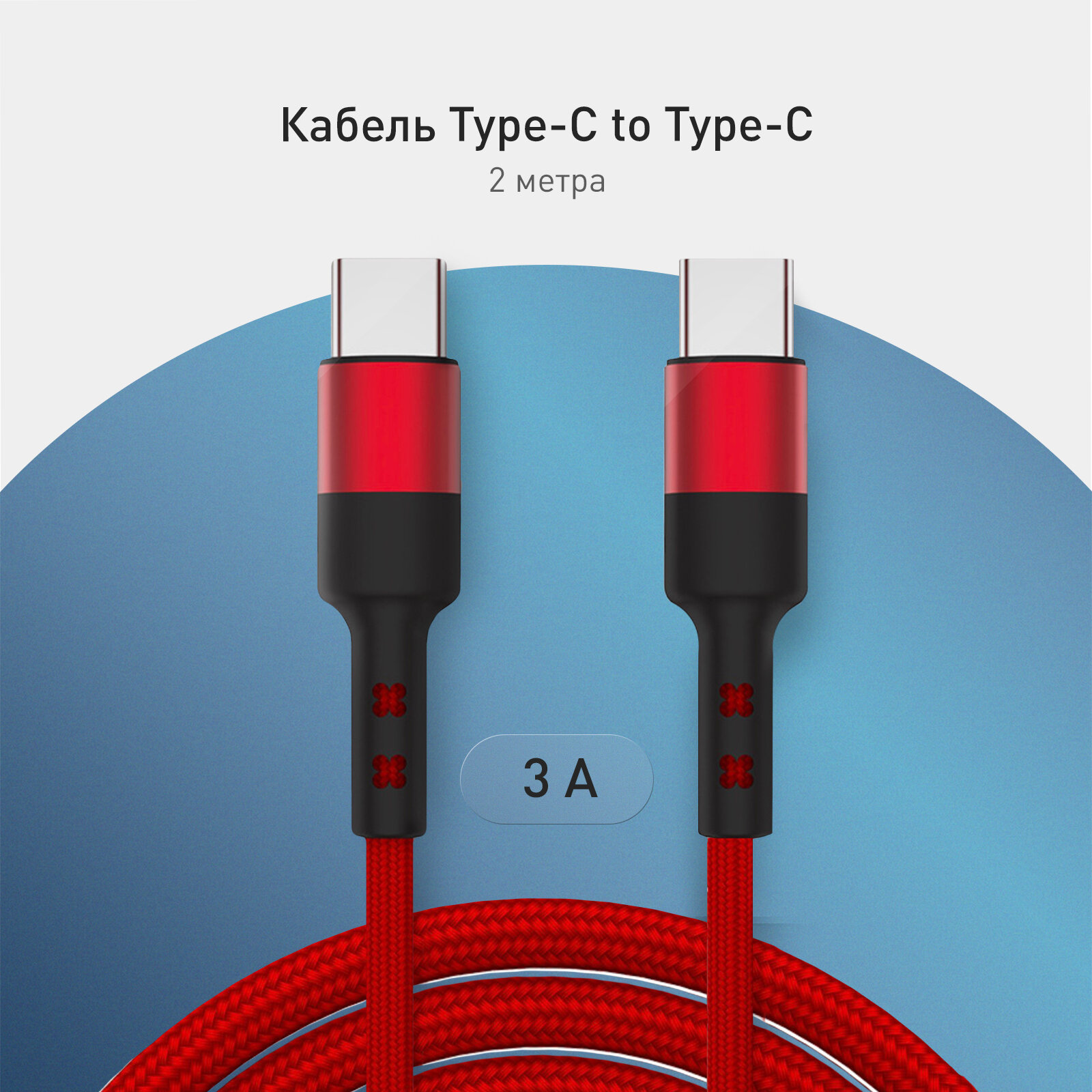 Зарядный кабель USB Type-C to Type-C Rosco, быстрая зарядка 65W, в нейлоновой оплётке, красный, 2 метра 537 ₽