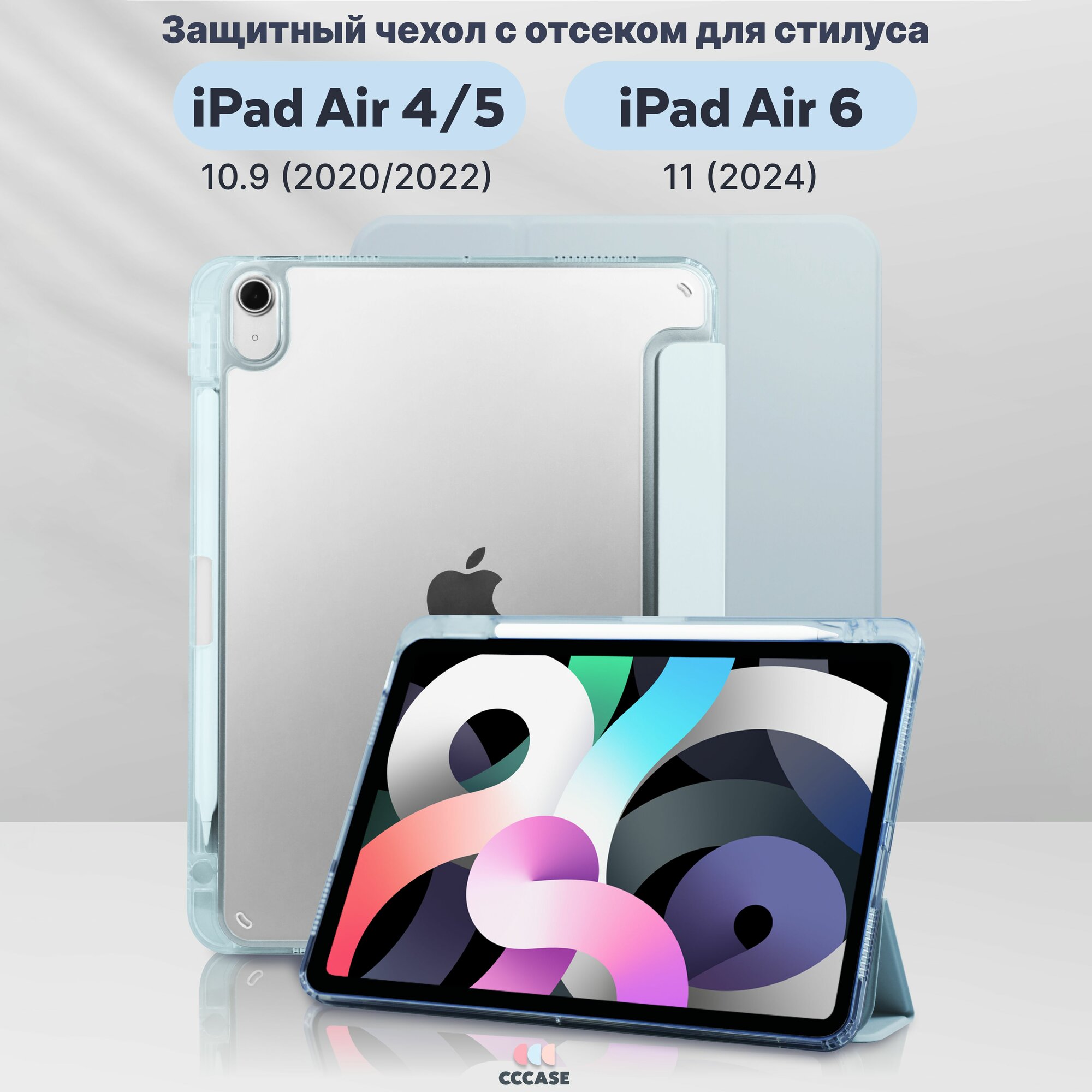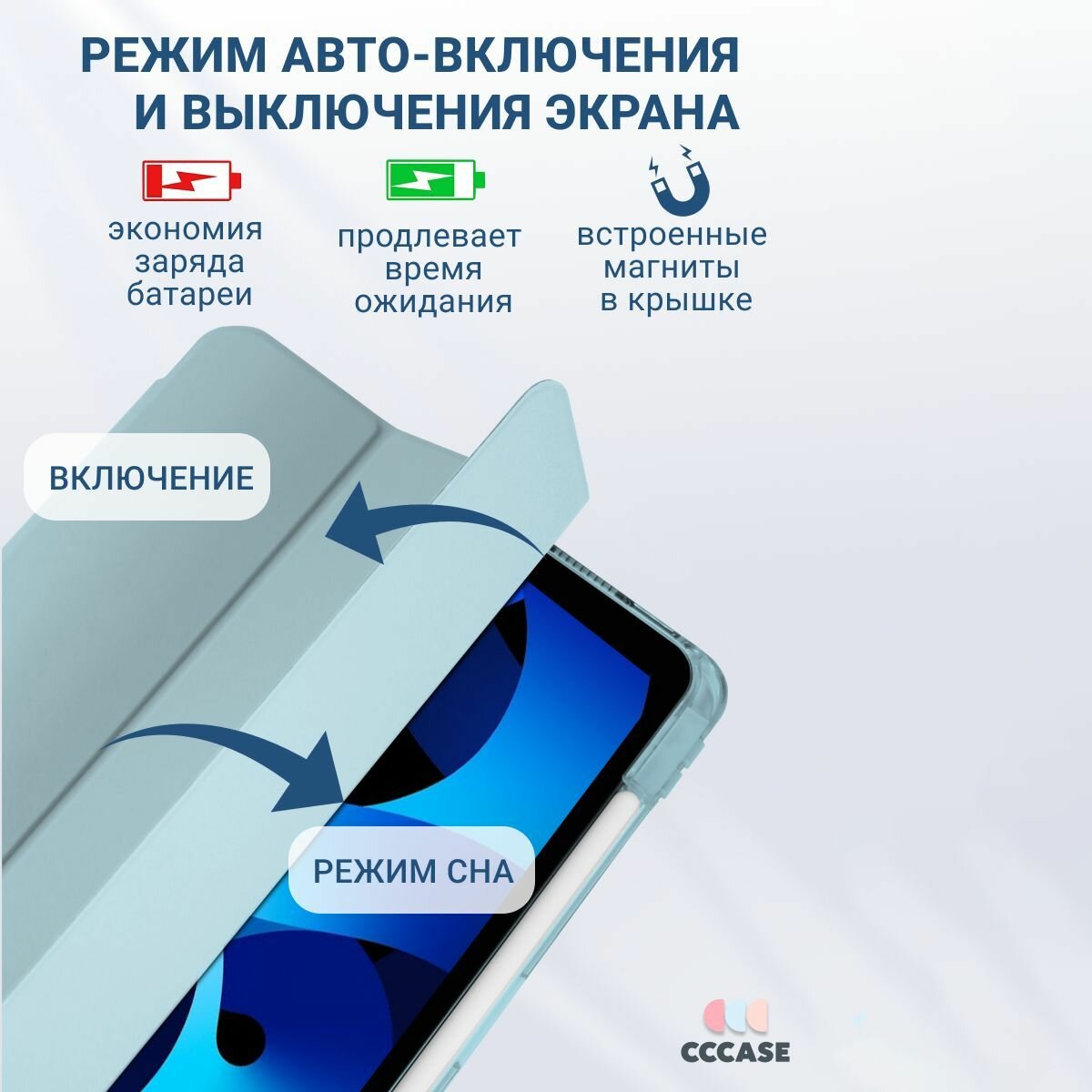 CCCASE / Чехол на iPad Air 6 11(2024); iPad Air 5 10.9 (2022); iPad Air 4 10.9 (2020) - A2316 A2324 A2325 A2072 A2588 A2589 A2591 A2902 A2903 A2904, с отделением для стилуса и прозрачной стенкой, цвет:голубой информация: