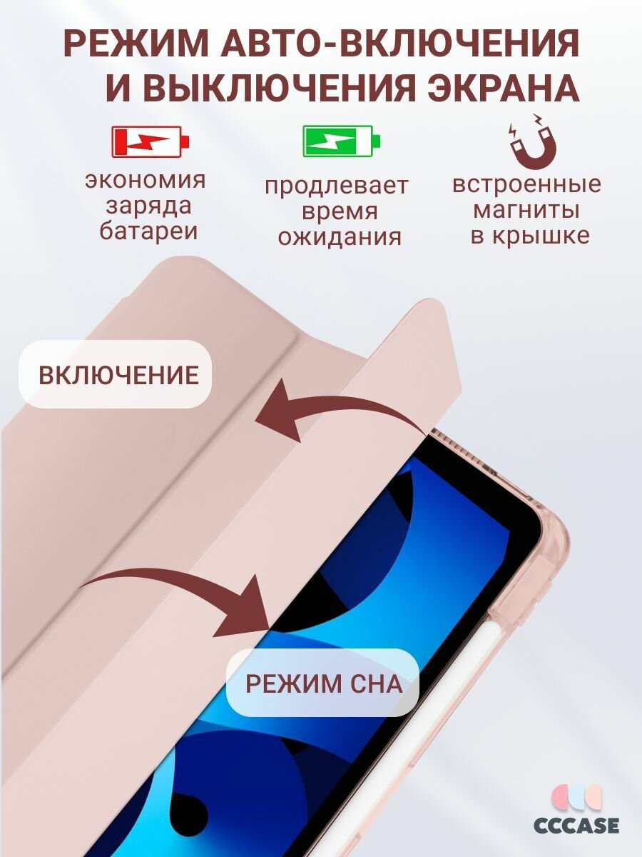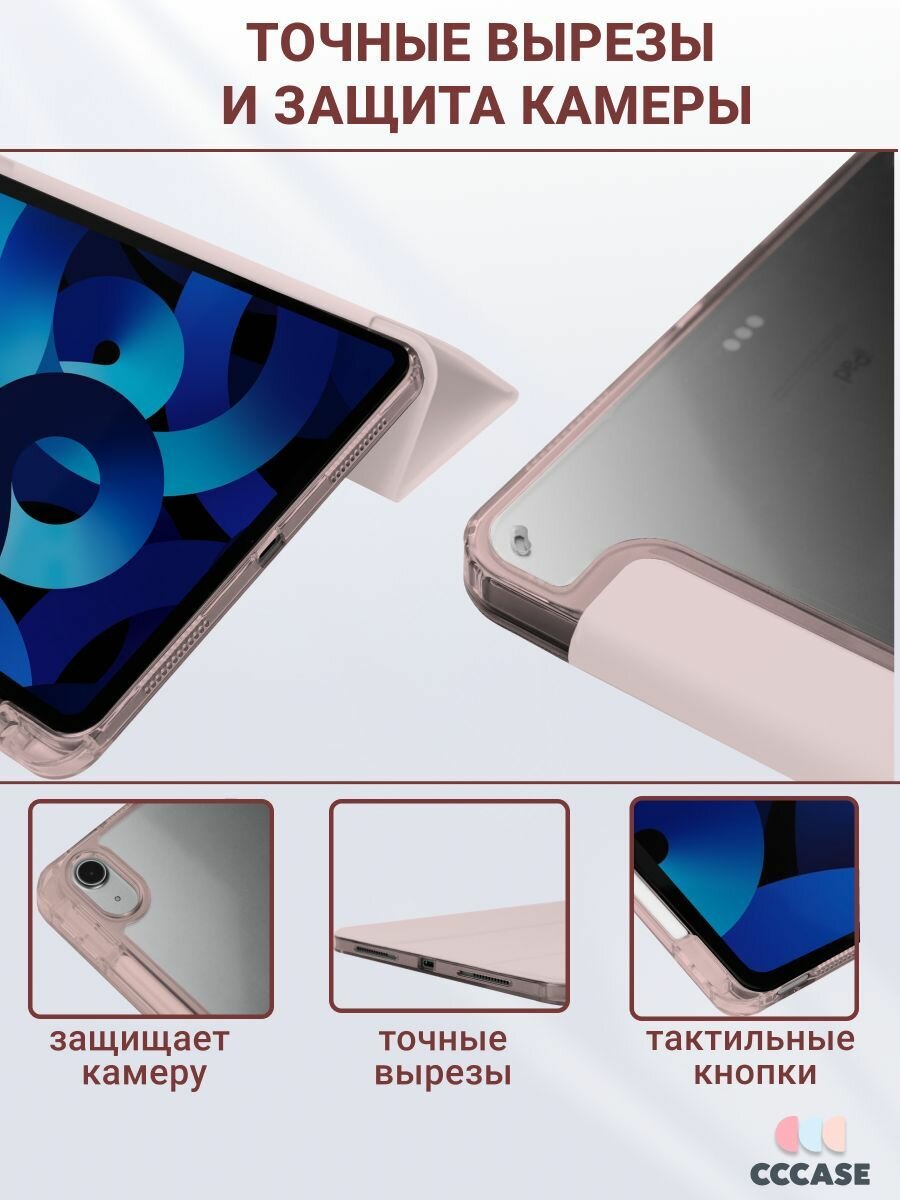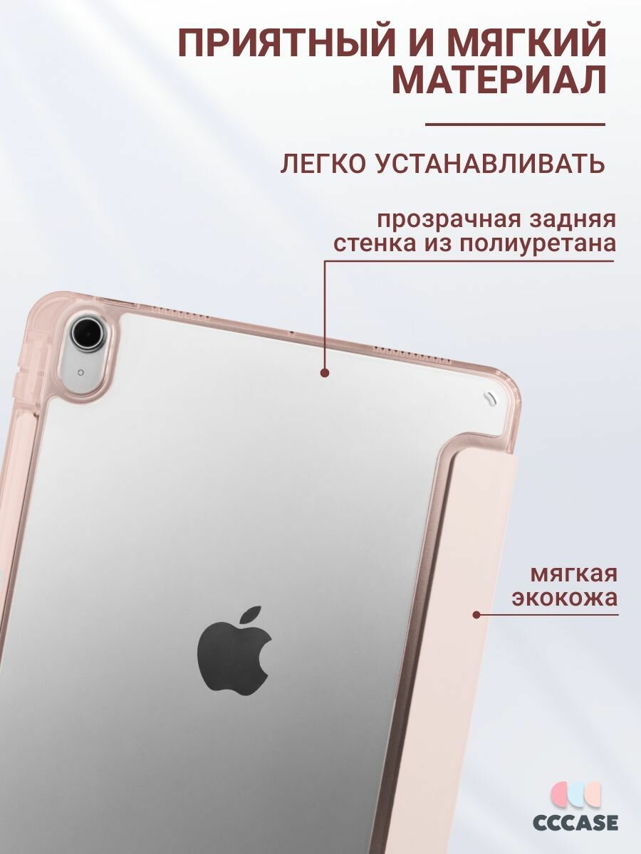 CCCASE / Чехол на iPad Air 6 11(2024); iPad Air 5 10.9 (2022); iPad Air 4 10.9 (2020) - A2316 A2324 A2325 A2072 A2588 A2589 A2591 A2902 A2903 A2904, с отделением для стилуса и прозрачной стенкой, цвет: пастельно-розовый информация: