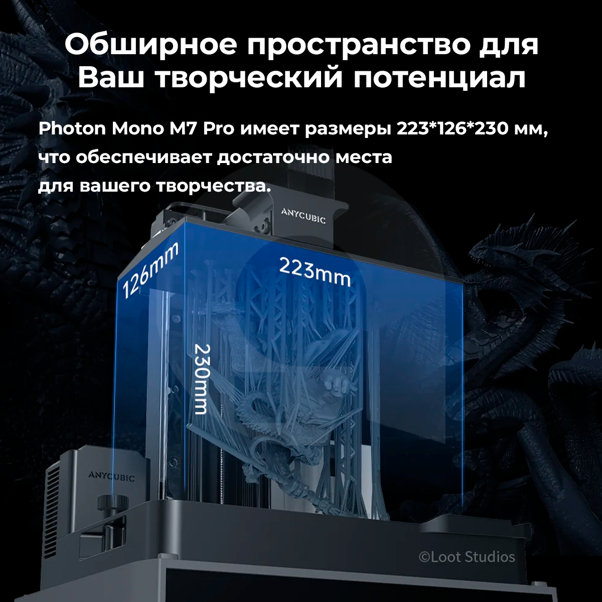 3д принтер ANYCUBIC Photon Mono M7 Pro, 226x126x230, LSD, ЖК-дисплей, 170 мм/ч скорость печати информация:
