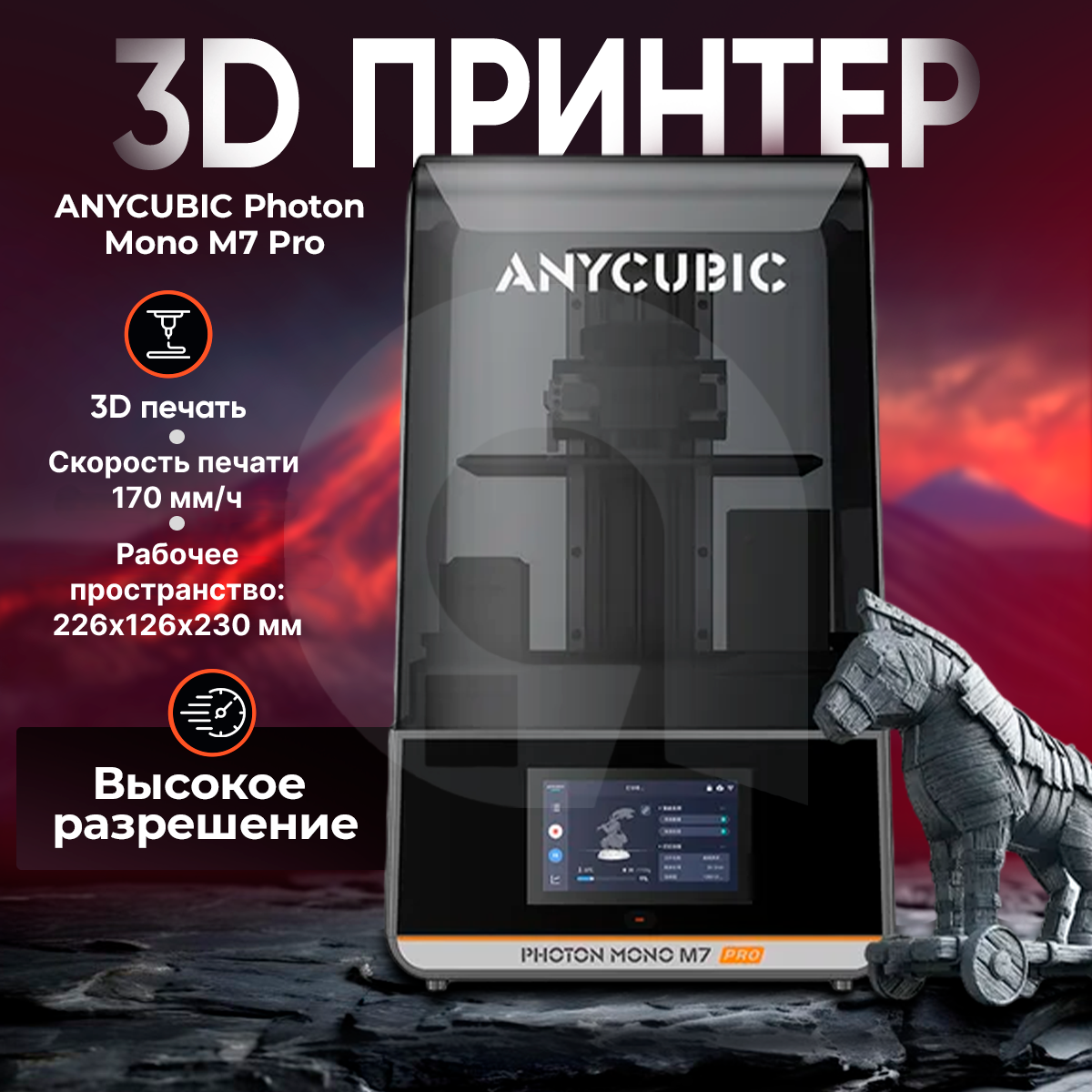10 цен на 3д принтер ANYCUBIC Photon Mono M7 Pro, 226x126x230, LSD, ЖК-дисплей, 170 мм/ч скорость печати