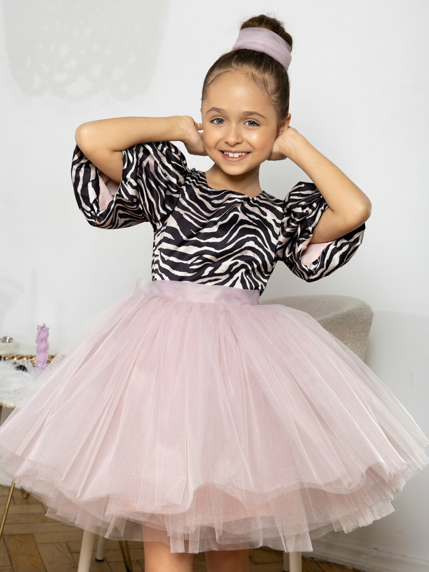 Платье пудровое 116 см шелковое нарядное с принтом "зебра" 6 900 ₽