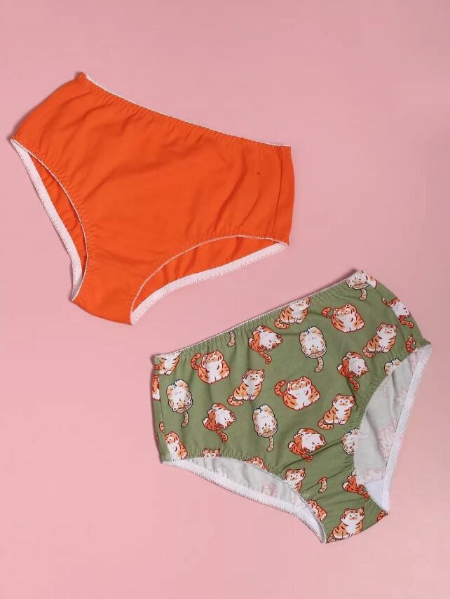 Отзывы на Женский комплект трусиков с высокой посадкой, хлопковые слипы, большие размеры 2 шт "Оранжевый/Тигры" S