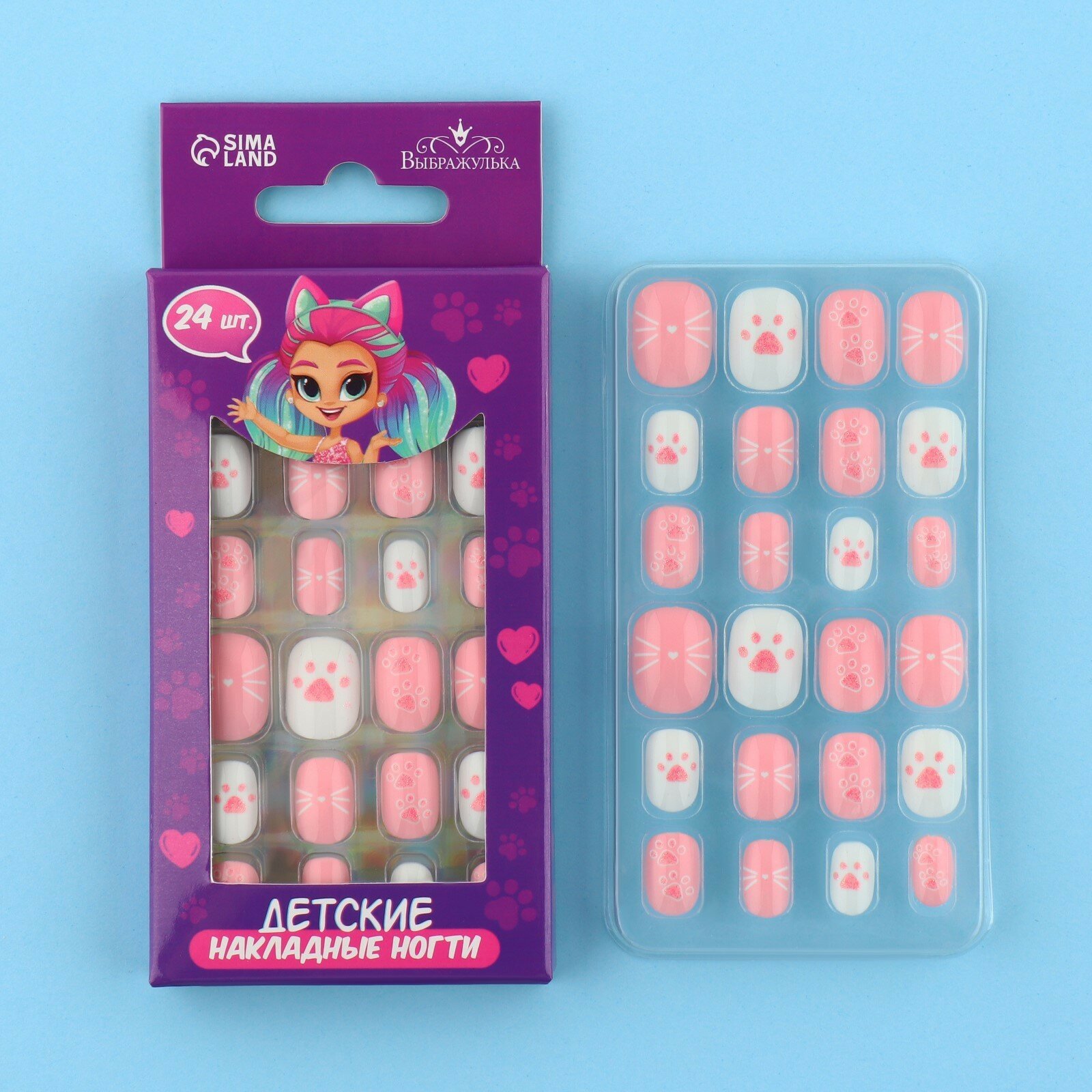 Накладные ногти детские Выбражулька "Кисуля" 24 шт, клей на ногтях 397 ₽
