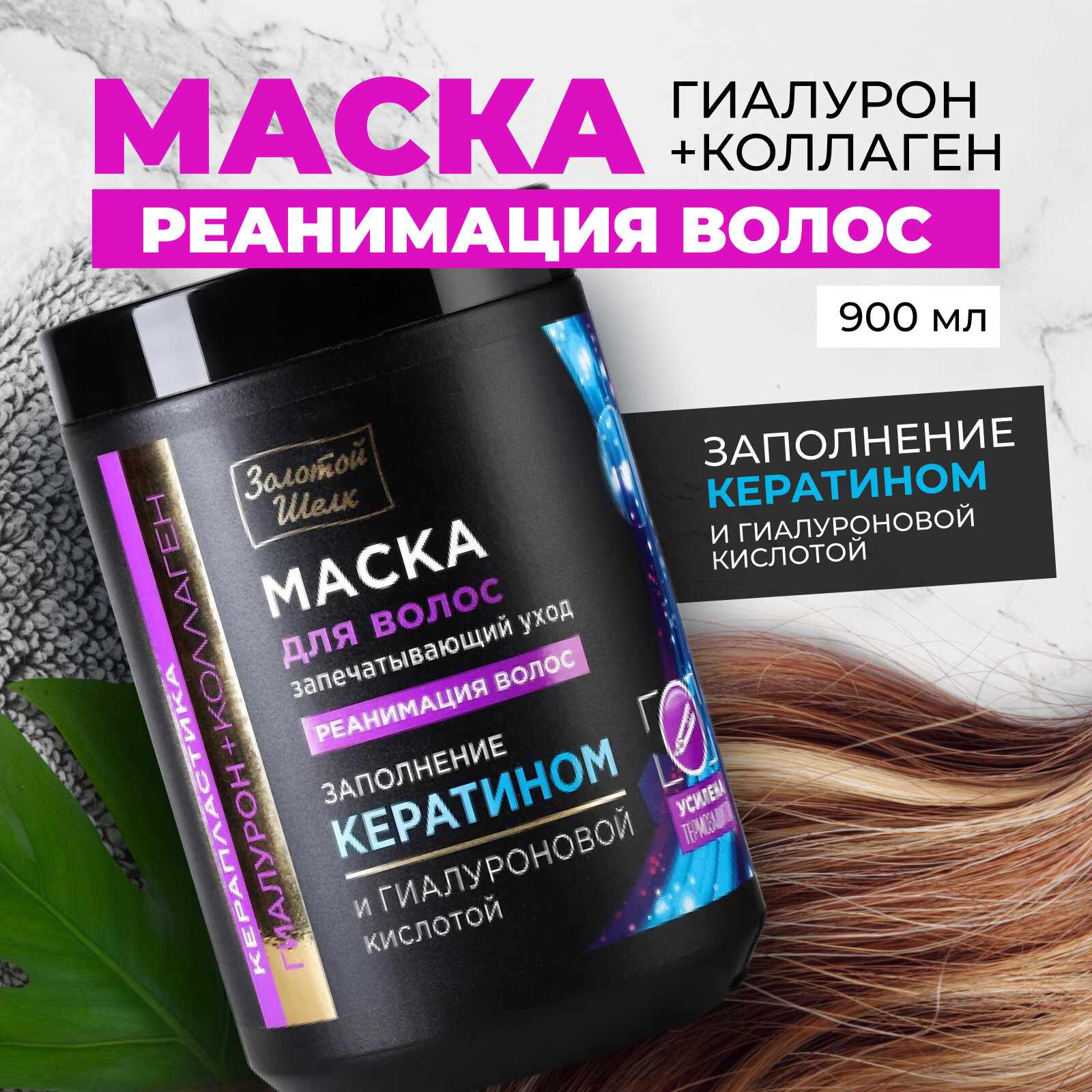 Золотой Шелк Маска для волос гиалуроновая кислота и коллаген "Реанимация волос Керапластика", 900 мл