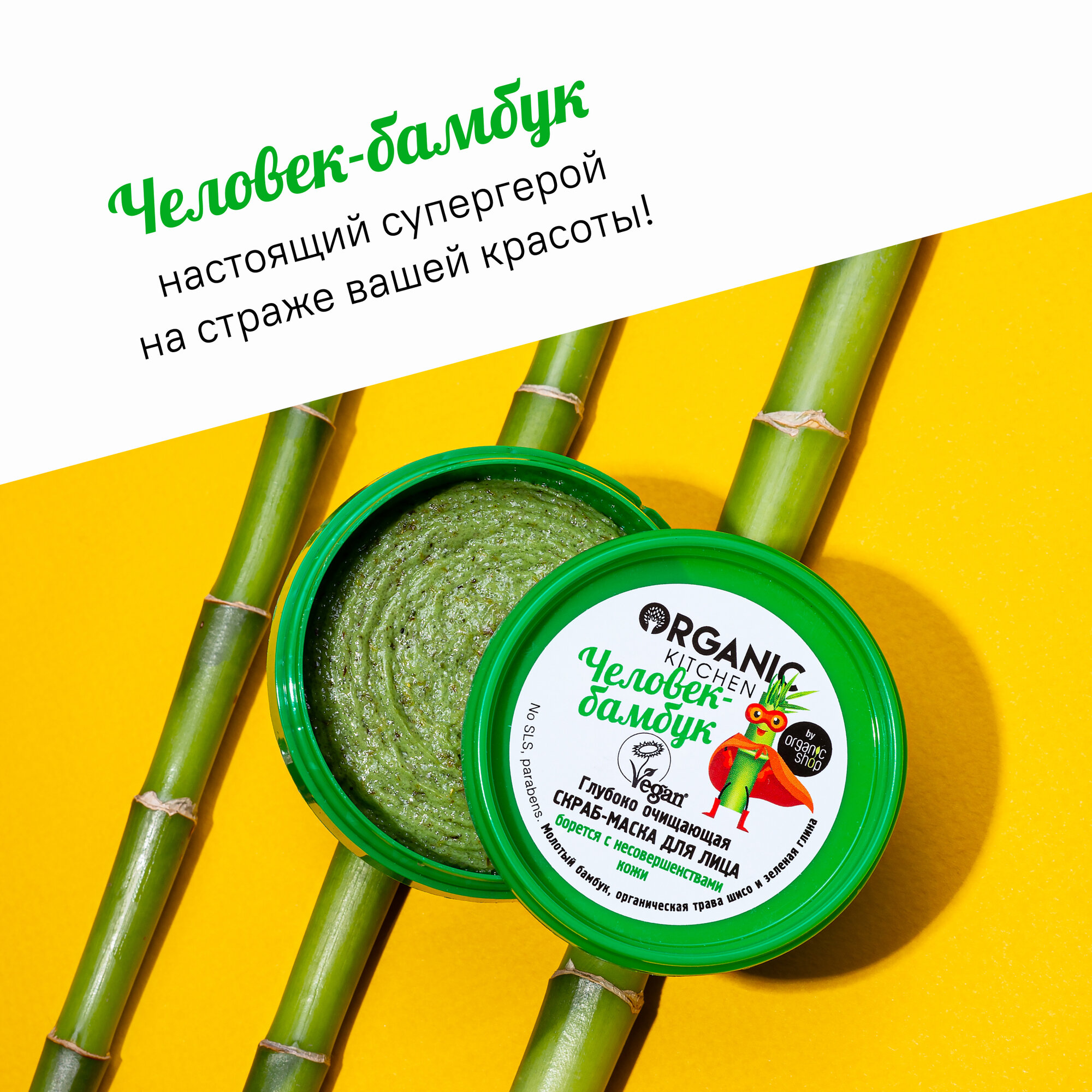 Скраб маска для лица Organic Kitchen "Человек-бамбук" глубоко очищающий от черных точек и прыщей отшелушивающий 100 мл информация: